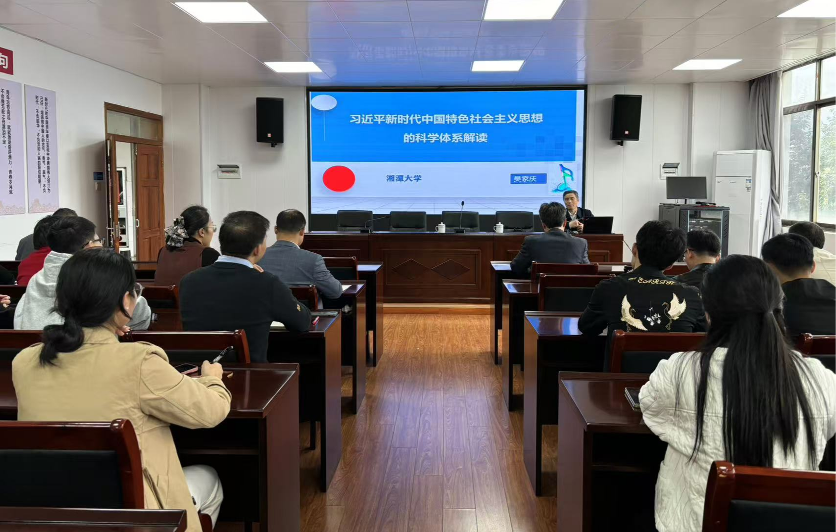 吴家庆以“习近平新时代中国特色社会主义思想的科学体系解读”为题,围绕以坚持“一个主题”为统领、以立足“两个大局”为基点、以回答“三个重大时代课题”为导向、以构建“四梁八柱”为结构主体,带领师生深入理解和把握习近平新时代中国特色社会主义思想的科学体系。整个报告内涵丰富、主题鲜明,思想性、学理性、学术性突出,展示了马克思主义理论大家的风范,对于师生深入学习宣传贯彻习近平新时代中国特色社会主义思想具有很强的针对性和指导性。