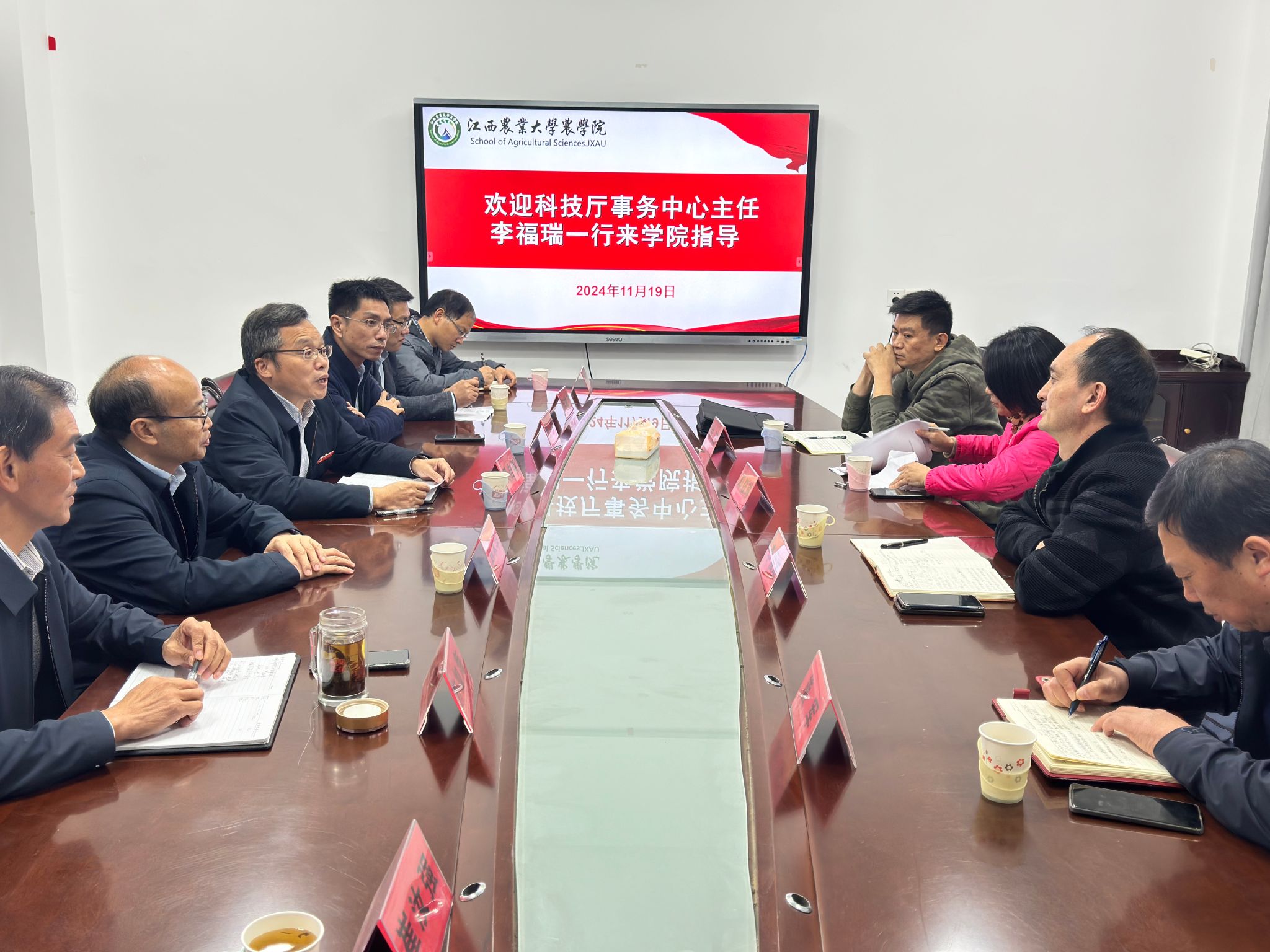 11月19日,江西省科技事务中心主任李福瑞一行到欧冠农学院举办江西省科学技术奖励申报指导报告会,并与欧冠副校长刘木华、校科技处负责人和农学院党政领导、教师代表进行了座谈。