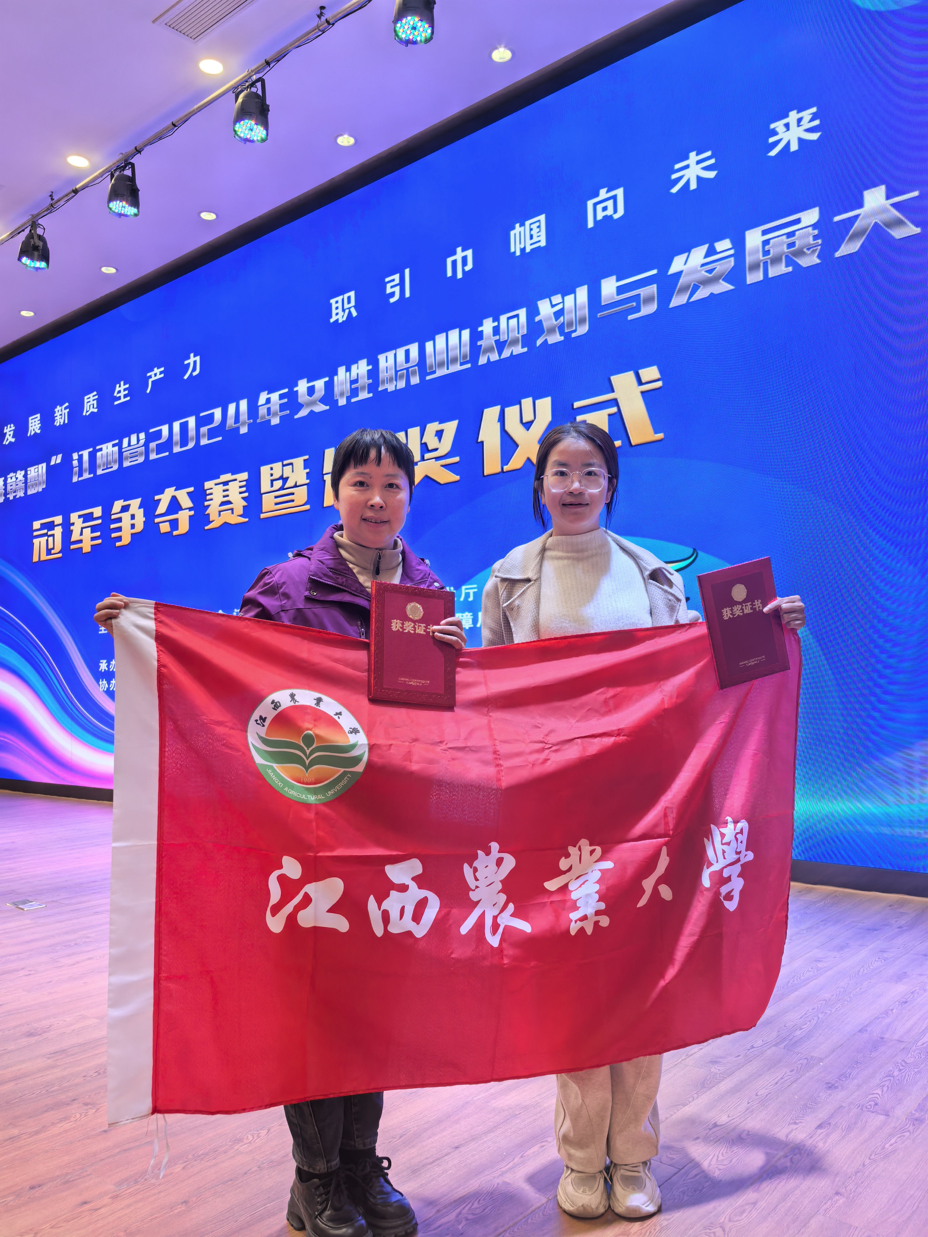 11月24日,“鹤舞赣鄱”江西省2024年女性职业规划与发展大赛冠军争夺赛暨颁奖仪式在江西旅游商贸职业学院举办。经过院赛、校赛、省级复赛、省级决赛激烈角逐和精彩展示,欧冠农学院博士研究生潘饶获银奖,马克思主义学院研究生林凌、农学院本科生刘佳蓓分别获优胜奖,学校获优秀组织奖。