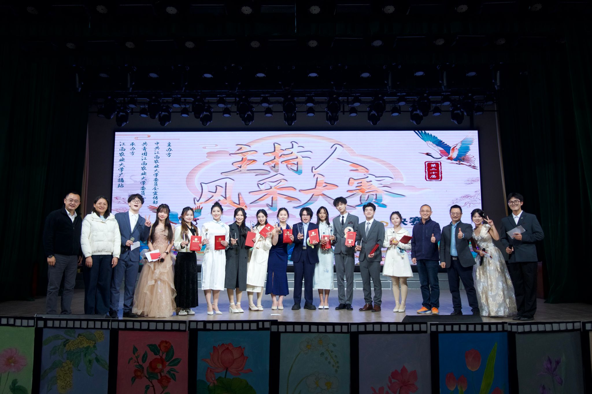 经过激烈角逐,人文与公共管理学院梁雯妮荣获金话筒奖,工学院刘嘉霈荣获最佳台风奖,外国语学院黄轩沈娜荣获最佳人气奖,经济管理学院付柏欣、园林与艺术学院胡玥、外国语学院刘栩翰、计算机与工程信息学院马钰欣、园林与艺术学院张舒怡、农学院郑锦涛、外国语学院毛涵语获得十佳主持人的荣誉称号。