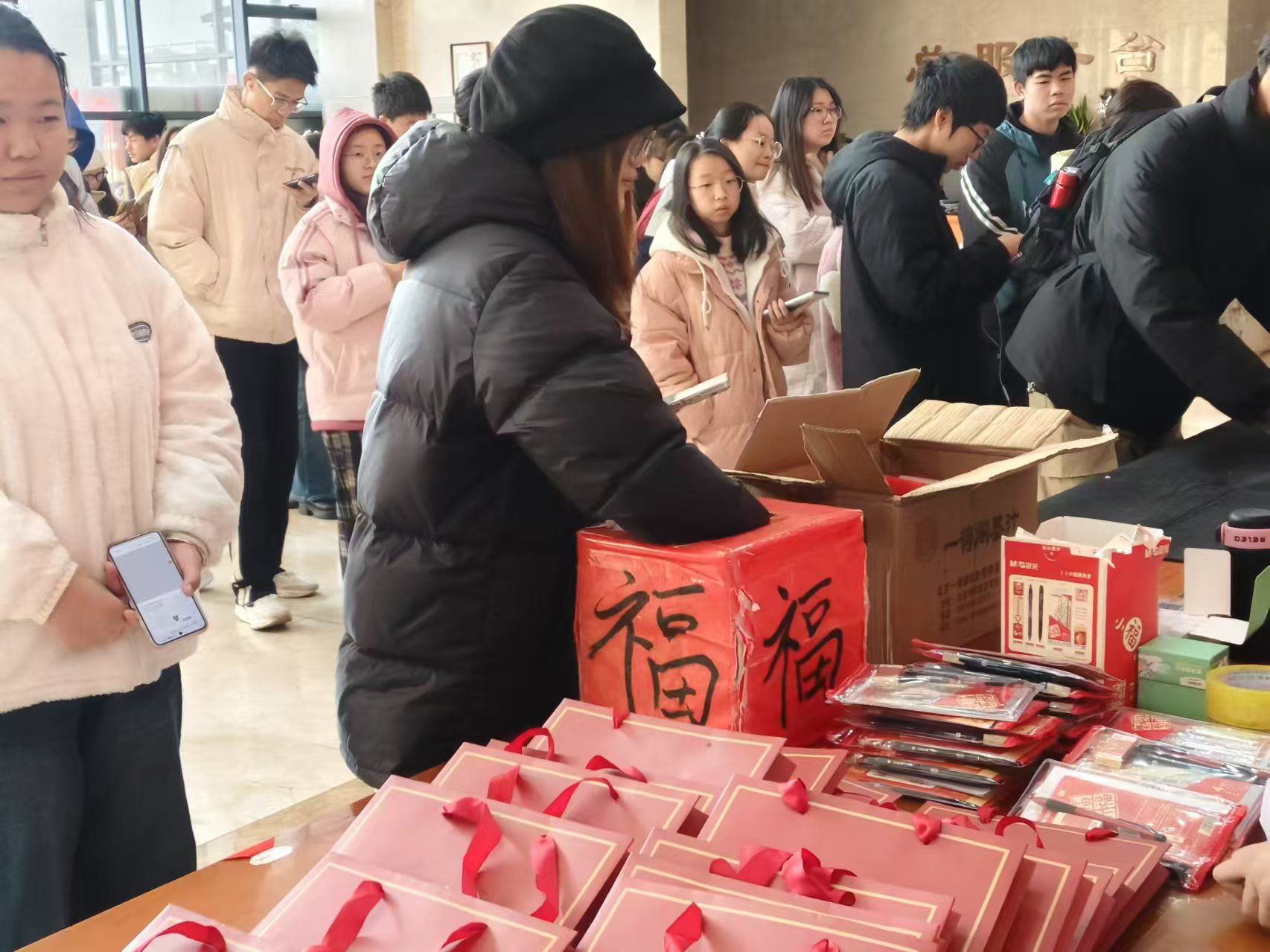 本次活动于本部图书馆和东区分馆同时举行,得到了广大师生的热情支持,现场共发放春联、斗方、福卡、卷轴等近1000副。协会成员们积极参与组织,将寓意美好期许的一副副春联和考研祝福送到师生手中,他们希望通过这种方式,为全校师生带来新年的喜悦和温暖,也为考研学子们送去力量和勇气。