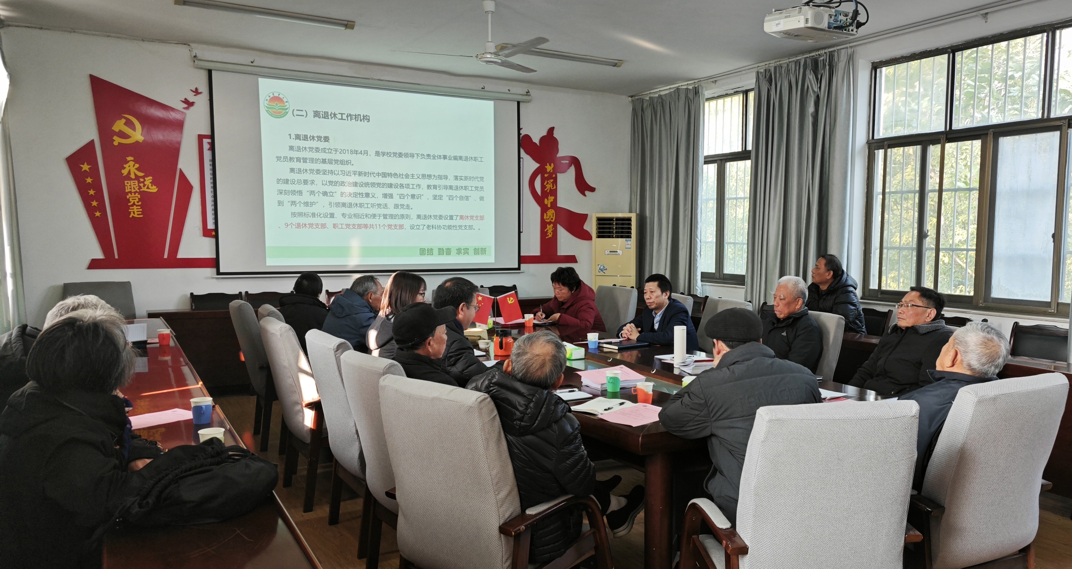 12月26日上午,副校长游金明到离退休工作处开展调研指导,并为离退休职工党员讲专题党课。