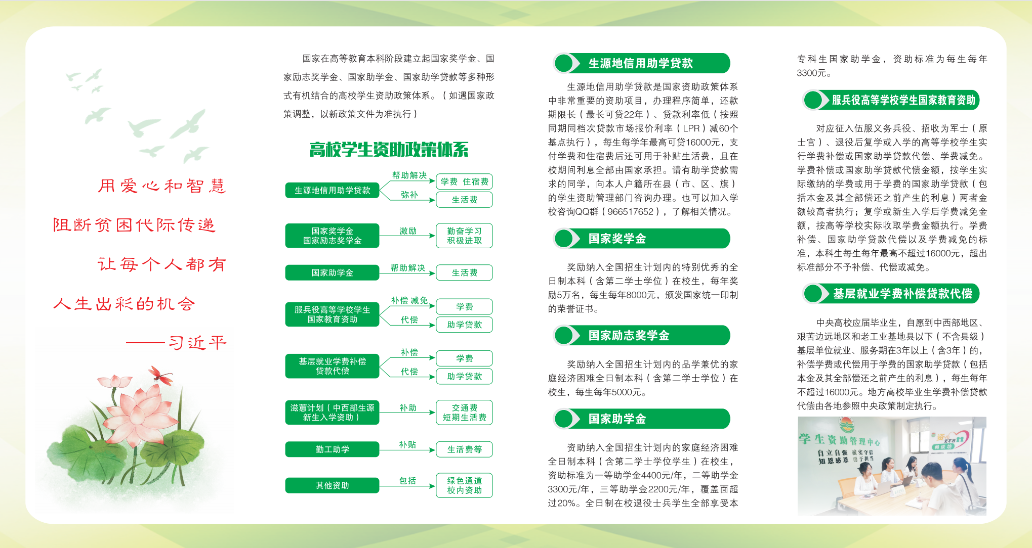 以资管委学生组织为依托,通过发放政策简介、开展政策答题活动、微信公众号和官网等网络媒体推送以及“资无不言”畅谈坊平台等形式,进行多渠道、立体式宣传,做到资助讯息“常在侧”,共计发放宣传册7300余份,推送123篇,学生阅读量高达36万余次;成立以家庭经济困难学生为主体的政策宣讲团,开展“我为资助代言—把政策送到学生手中”主题宣传活动,利用新生晚自习契机,面向新生深入开展资助政策宣传活动,做到资助政策“常在耳”,共计宣讲105场,同年欧冠办贷学生增加近500人,办贷金额增加1600余万元;聘任学生资助宣传大使,寒暑假期间开展回母校、返家乡送政策等活动,以实践活动的方式宣传资助政策,做到资助声音“常在心”。