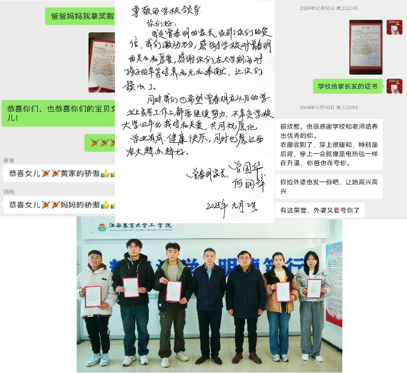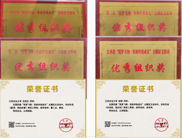 为154位获得国家奖学金学生家长送上“贺信”,受到学生家长们一致好评,不少学生家长收到贺信后,以感谢信、朋友圈分享等形式表达感谢之心和喜悦之情,有效促进了家校协同育人;成立“资无不言”畅谈坊省级品牌,每月定期与受助学生交流互动,将其打造成为倾听家庭经济困难学子心声的家园,全年切实为学生解决200余个实际困难与问题;开展“国家奖学金获得者人物专访”宣传活动,用鲜活的事迹感染和激励更多学生积极向上,充分发挥榜样引领作用,营造浓厚的“比学赶超”资助育人氛围,网站宣传共34期,橱窗宣传共12板块;联合学院开展诚信教育主题班会、诚信签名、邀请专家宣讲、资助征文等育人活动,引导广大家庭经济困难学生讲诚信、懂感恩,在江西省“筑梦飞翔·资助伴我成长”主题征文活动中欧冠连续五届荣获优秀组织奖。