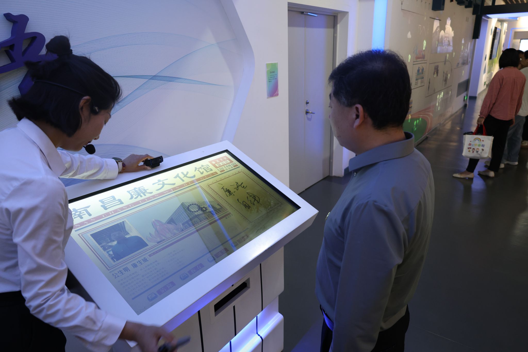 在讲解员的引领下,大家依次参观了趣识廉事、廉影“触”人心、先贤解惑、廉史大讲堂、党纪法规轻松学等多个展区;利用智能语音、VR虚拟现实、互动答题等现代科技手段,开展体验式互动式学习,并齐声诵读了“廉洁三字经”,以生动有趣的方式加深了对廉文化的认识。
