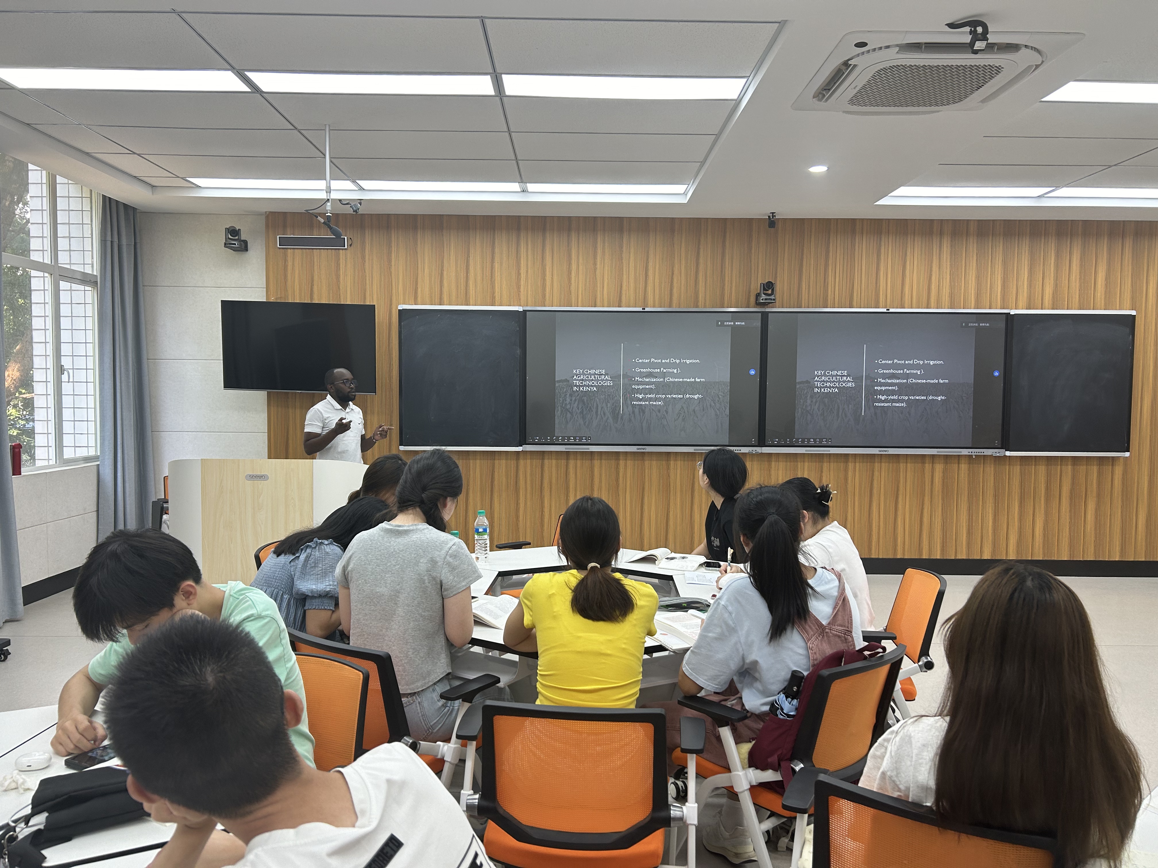 在互动环节,曾妍组织留学生代表和经济管理学院学生代表进行了主题分享。留学生代表结合自身在中国学习的经历,讲述了对人类命运共同体理念的切身感受,以及中国为建设美好世界作出的积极贡献。学生代表结合案例,讲述了参与“共建‘一带一路’”、推动构建人类命运共同体的“农大故事”,表达了积极投身构建人类命运共同体的决心。