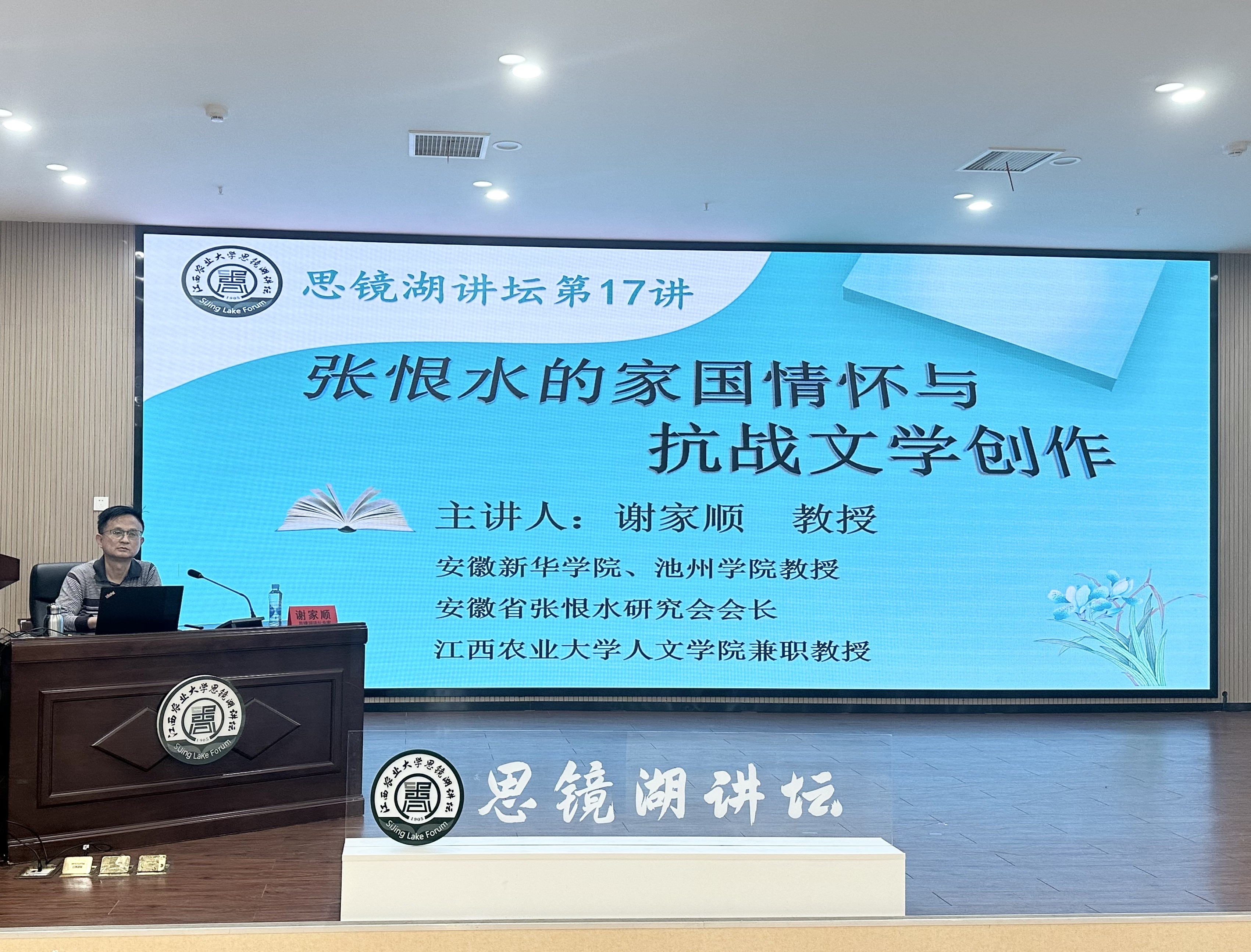 为纪念“中国抗战小说第一人”张恨水先生诞辰130周年,深入挖掘抗战文学的精神内涵,6月3日下午,思镜湖讲坛在图书馆一楼报告厅成功举办“张恨水的家国情怀与抗战文学创作”专题讲座。本次讲座特邀安徽新华学院、池州学院教授、安徽省张恨水研究会会长谢家顺担任主讲,吸引了全校100余名师生踊跃参与。