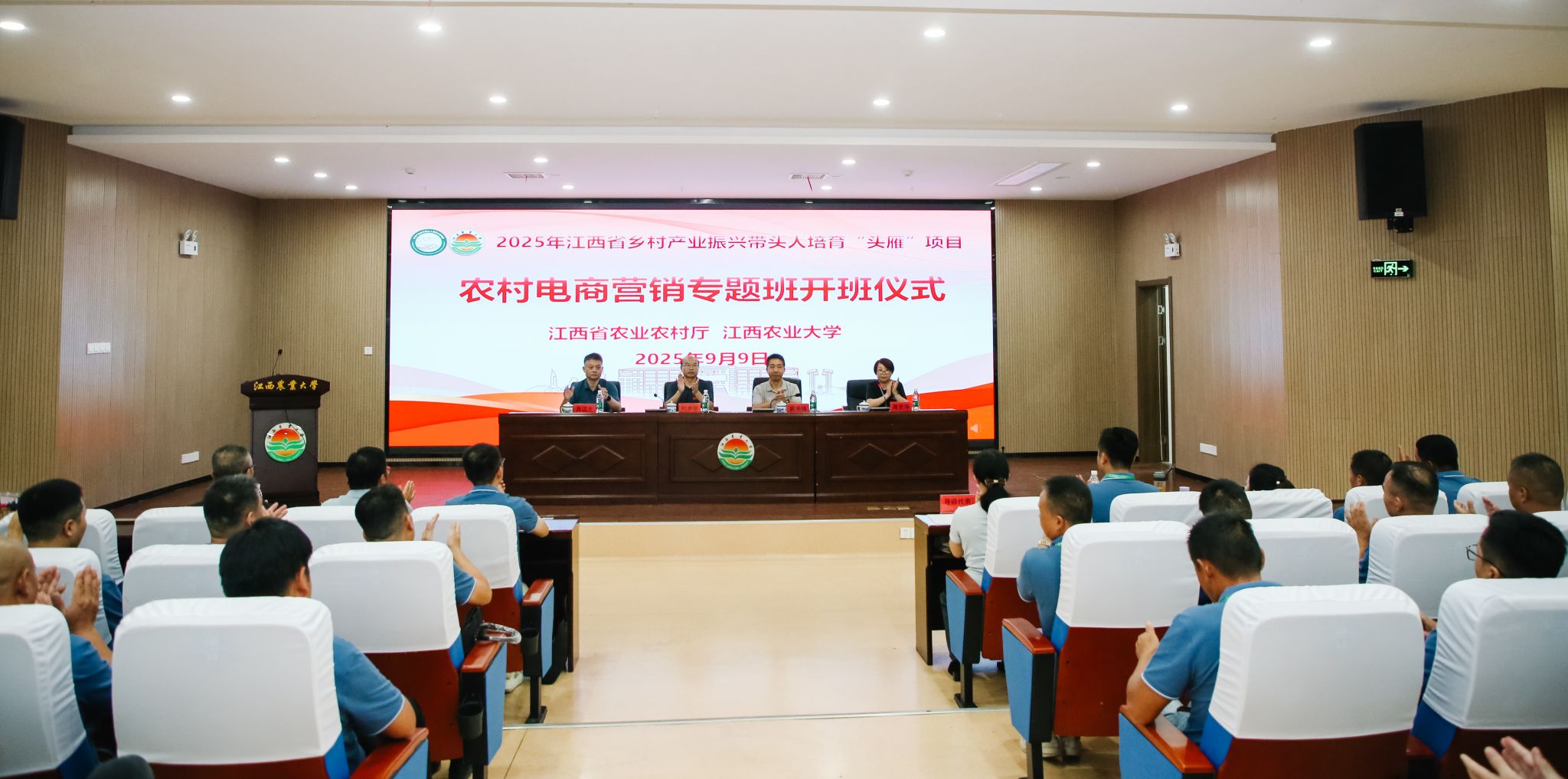 9月9日上午,2025年江西省乡村产业振兴带头人培育“头雁”项目农村电商营销专题班开班仪式在欧冠图书馆报告厅一楼举办。副校长刘木华,江西省农业农村厅人事处处长黄承锋,继续教育学院负责人以及“头雁”学员共80余人参加开班仪式。
