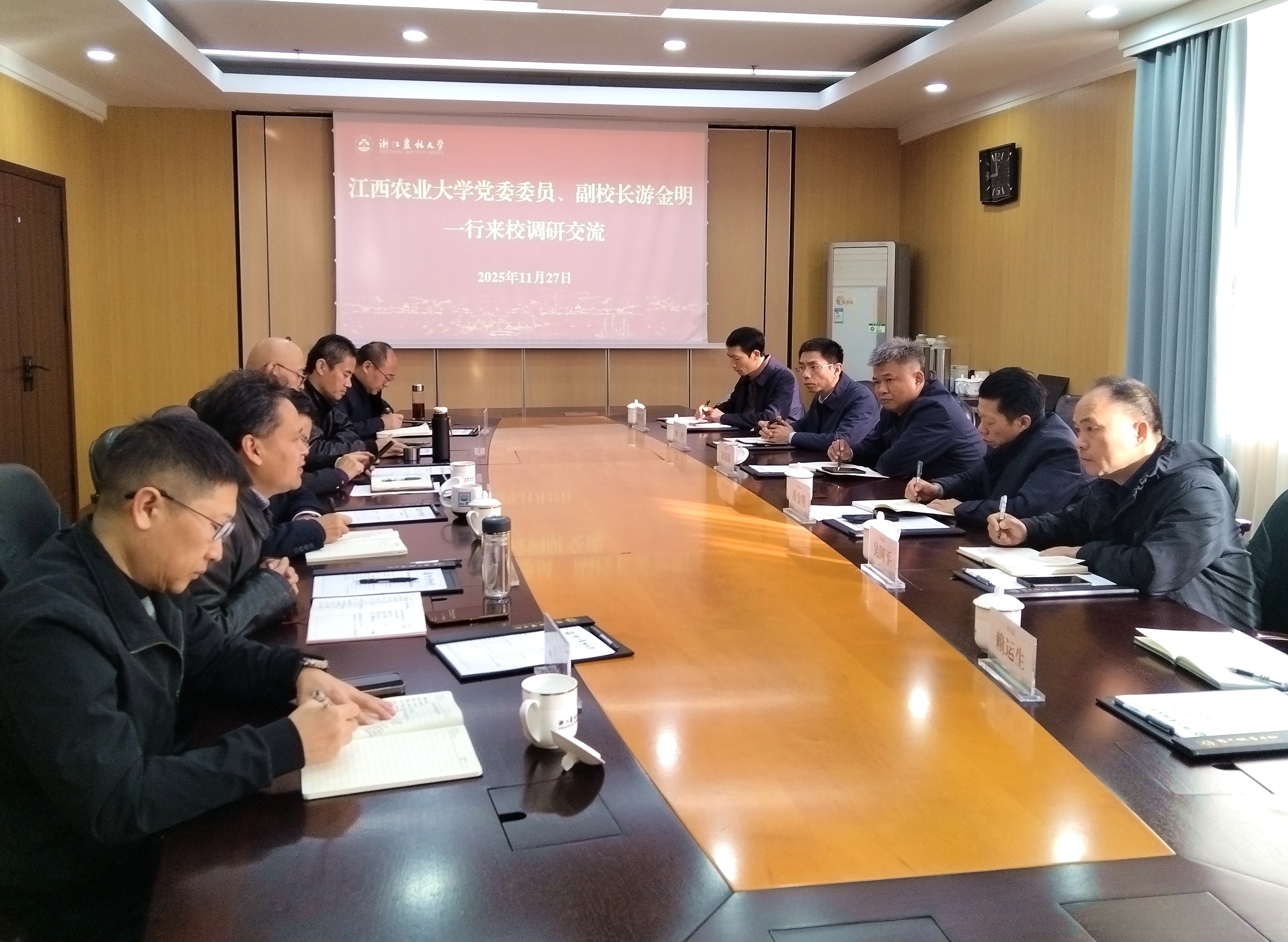 为推进学校第四次党代会报告起草和“十五五”规划编制,11月27日,校党委委员、副校长游金明带队先后赴浙江农林大学、南京农业大学开展专题调研。