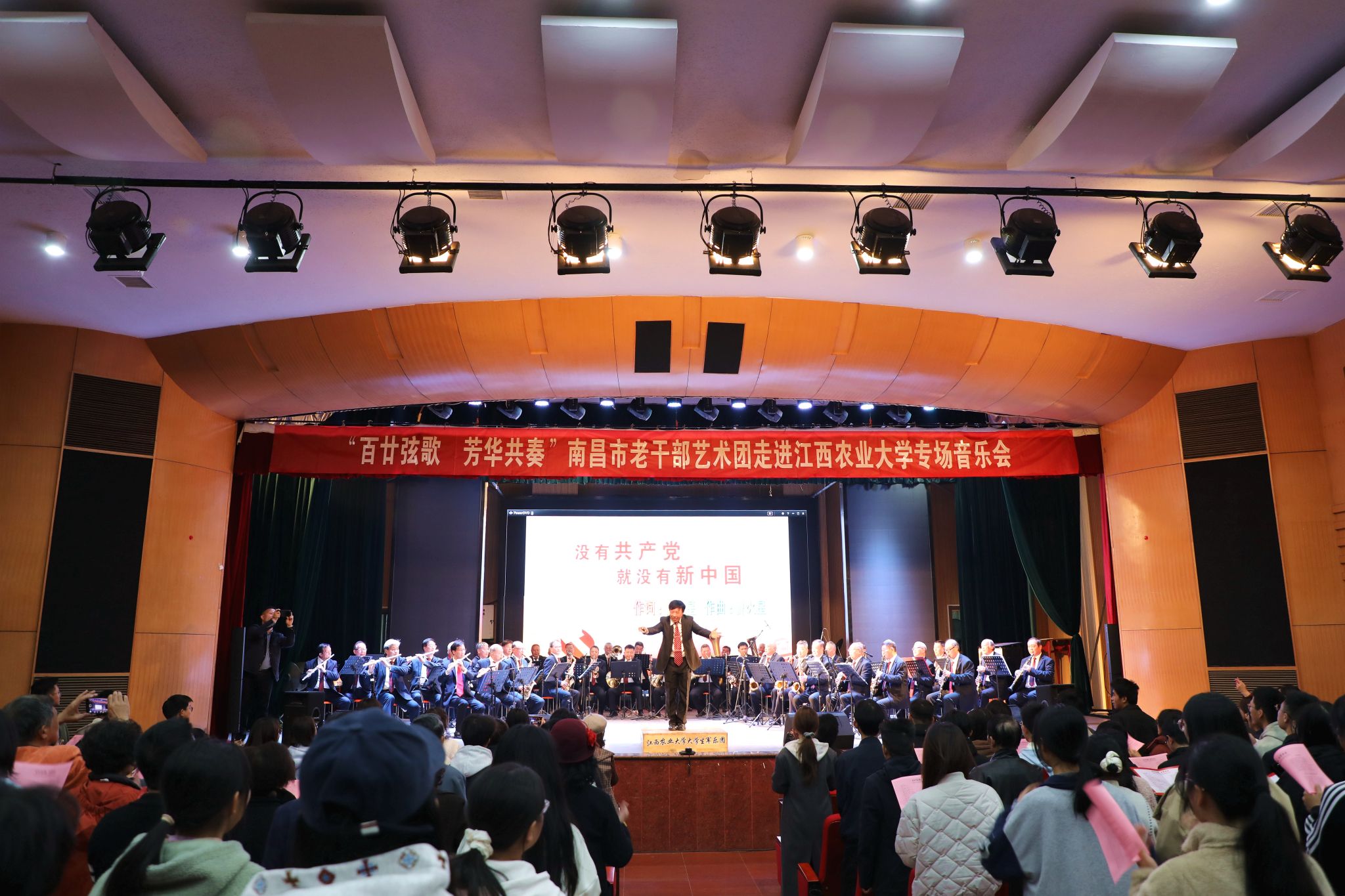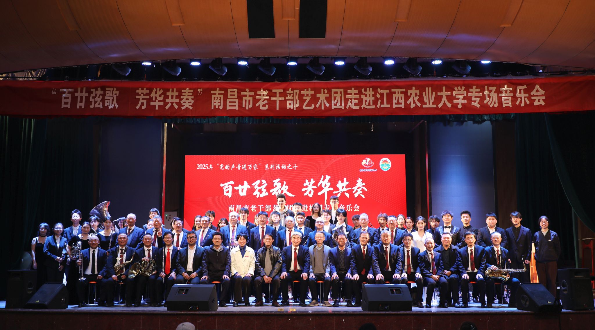 12月2日,2025年“党的声音进万家”系列活动之“百廿弦歌 芳华共奏”南昌市老干部艺术团走进校园专场音乐会在欧冠举行。