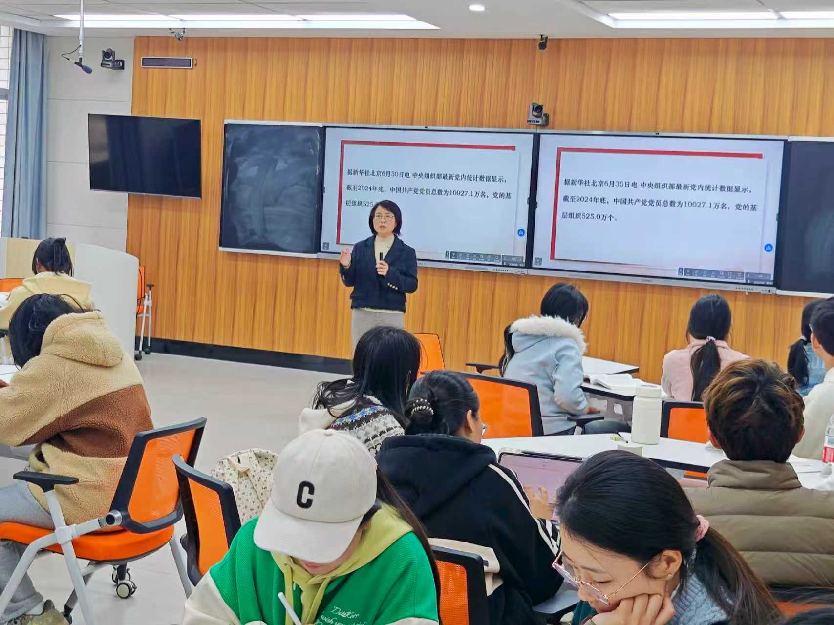 12月2日下午,2025-2026学年第一学期“习近平新时代中国特色社会主义思想概论”课程迎来最后一讲。马克思主义学院赵美岚教授讲授“坚定不移全面从严治党”专题。