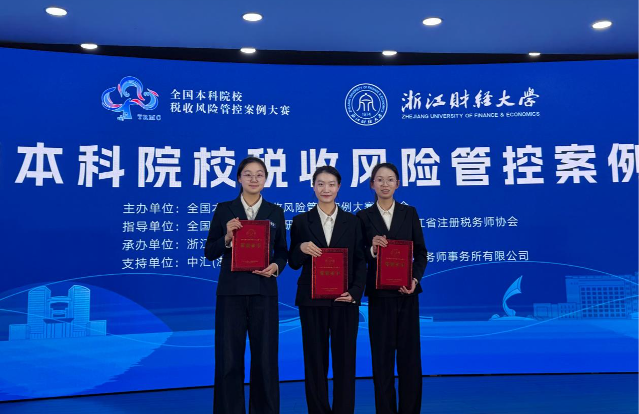 近日,2025年全国本科院校税收风险管控案例大赛全国总决赛在浙江财经大学结束。经管学院会计系学子张婧、陈书、付晨斯三位研究生组成的参赛团队,在张征华教授、邓平华老师和中汇(江西)税务师事务所李勇副总裁的共同指导下荣获江西省分赛区一等奖,成功晋级全国总决赛(全省仅六个名额)并荣获二等奖。