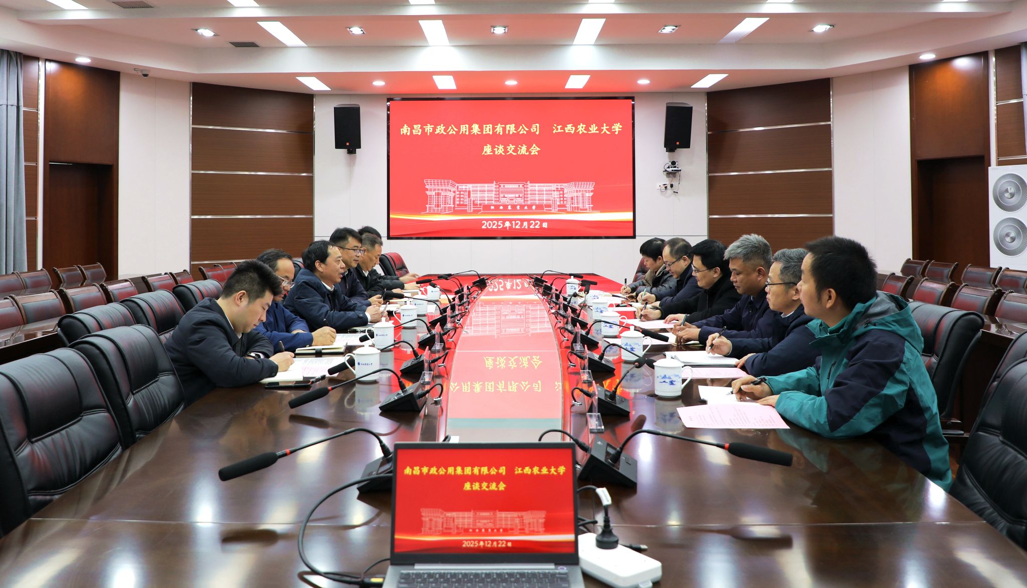 12月22日下午,南昌市政公用集团有限公司党委书记、董事长万义辉一行来校调研座谈。副校长张高亮出席座谈会,人事处、招生就业处、校友工作服务中心、农学院、动物科学技术学院等单位负责人参加座谈。
