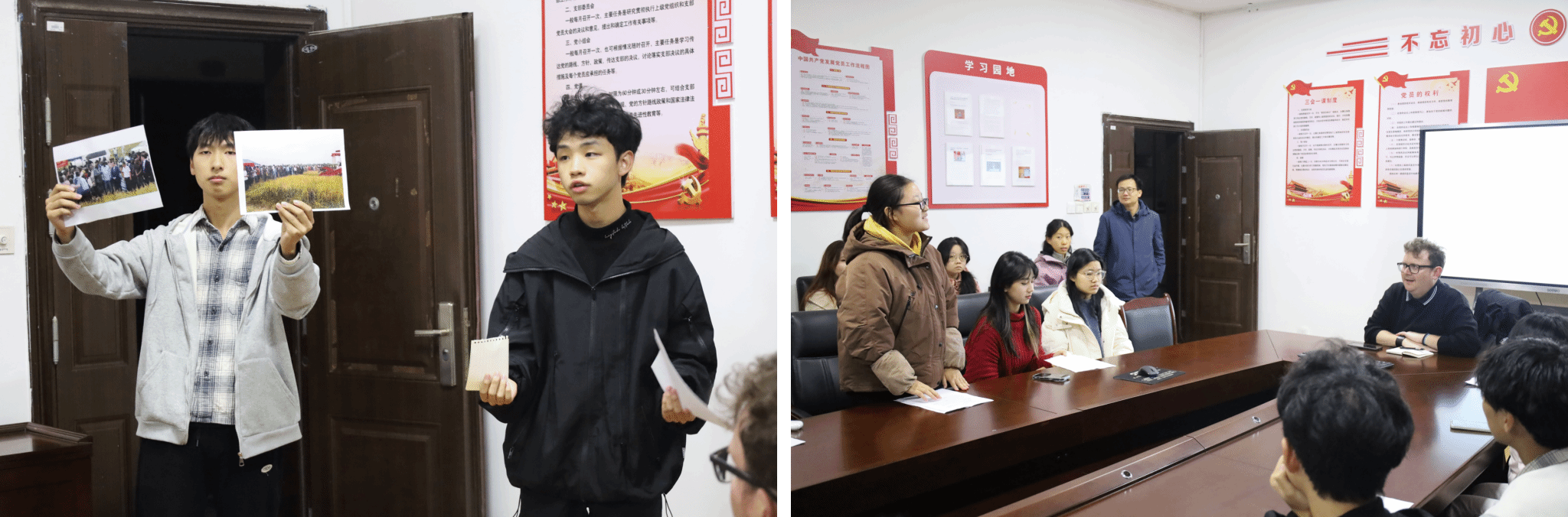 12月17日,第三期以“The Rice Revolution: Super Rice and Our Future”为主题。同学们重点介绍了“Y两优900”创下的亩产988公斤高产纪录,以及“绿色超级稻”在亚非18国推广百万公顷的国际影响。基因编辑技术实现杂交稻自留种等前沿动态,同样引发热烈探讨。师生围绕“粮食安全与技术伦理”等议题展开深度研讨。