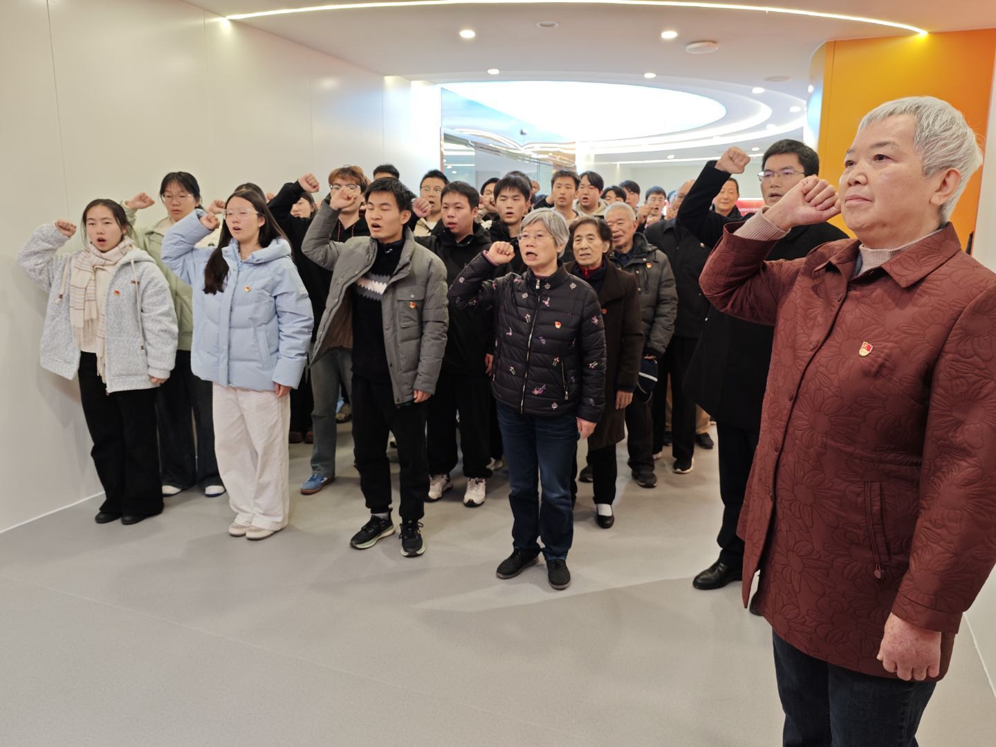 活动伊始,全体党员走进党建馆、廉政馆。在讲解员的引导下,大家认真参观馆内陈列的珍贵照片、实物史料与文献档案,深入了解学校在办学治校、人才培养、科研创新等领域的发展历程与丰硕成果,深刻感悟学校积淀的深厚文化底蕴与精神传承。随后,在鲜艳的党旗前,全体党员高举右拳,庄严宣誓。“我志愿加入中国共产党,拥护党的纲领,遵守党的章程……”铿锵有力的誓言响彻现场,既是对党员身份的再确认,更是对初心使命的再宣誓,让每一位党员在重温入党誓词的过程中,进一步坚定理想信念,强化责任担当。