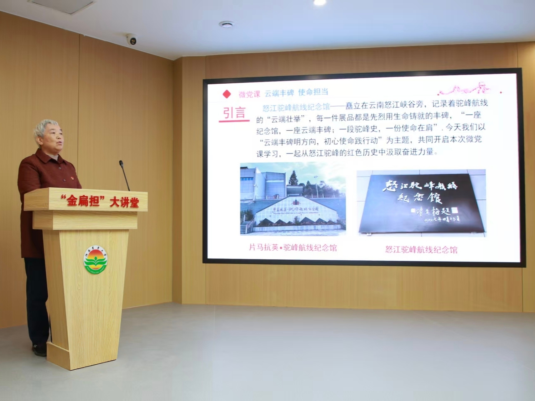宣誓仪式结束后,两个支部联合开展专题微党课学习。离退休党委退休第六支部书记吴彦红老师以“云端丰碑,使命担当”为主题,在抗日战争暨世界反法西斯战争胜利80周年纪念之际,分享其参观怒江驼峰航线纪念馆的感悟与思考。