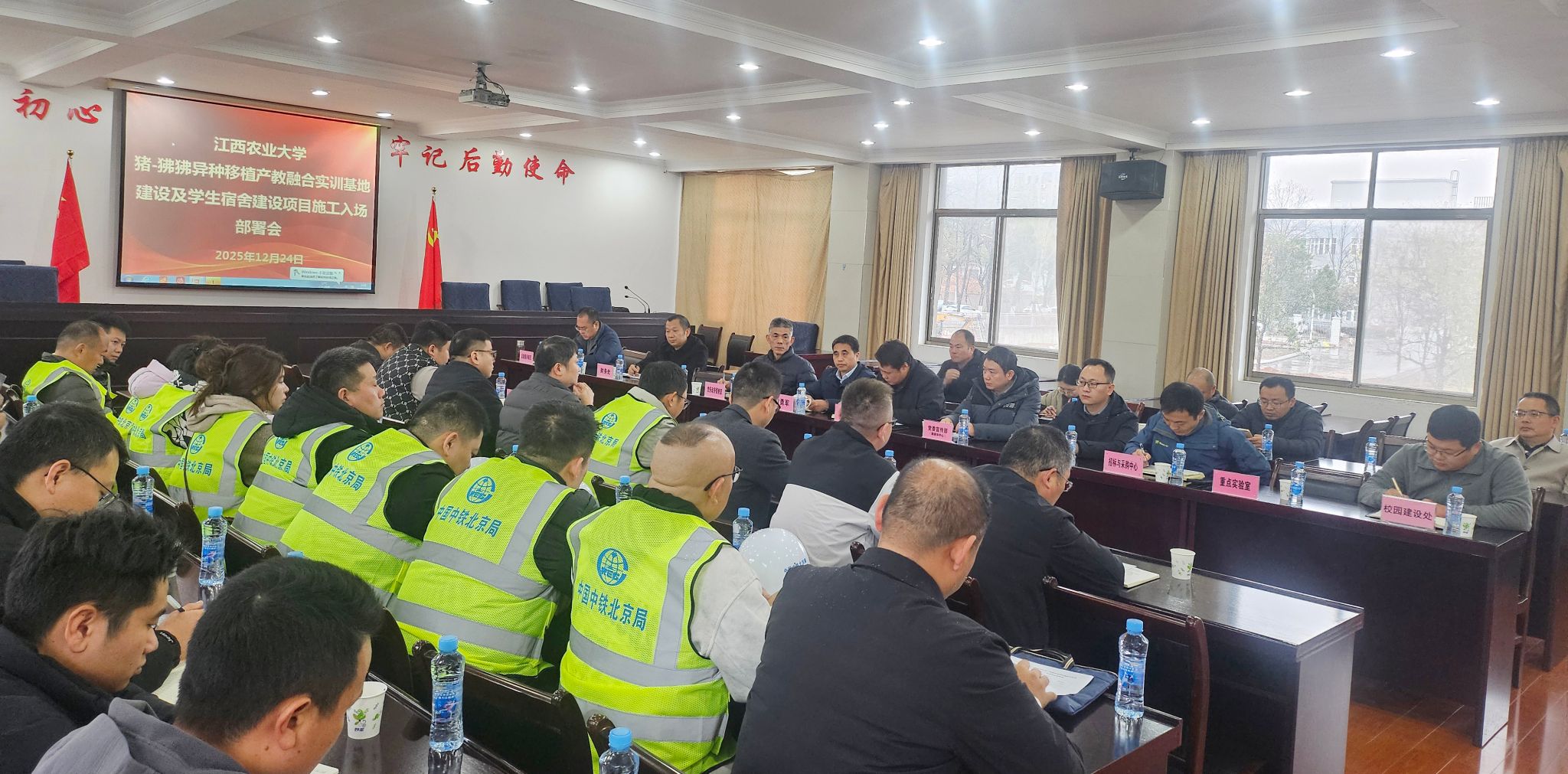 12月24日,学校召开猪-狒狒异种移植产教融合实训基地及学生宿舍建设项目施工入场部署会。副校长曾勇军出席会议并作动员讲话。学校相关职能部门负责人及各参建单位管理人员参加会议。