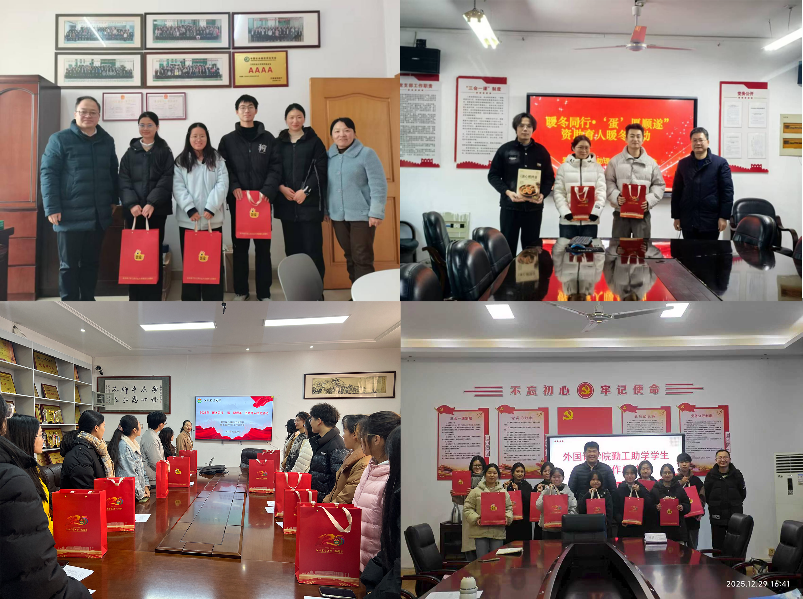 岁末寒冬,新元肇始。为切实关怀勤工助学学生群体,深化资助育人实效,学工部资助中心于近日开展年终关怀活动,为寒冬中的家庭经济困难学子送去温暖与鼓励,推进资助育人工作走深走实。