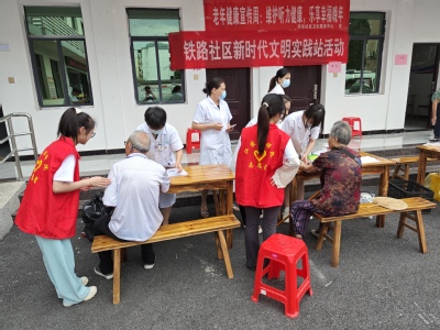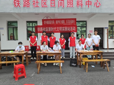 在吉安市青原区铁道社区,实践队成员协助开展“我为群众办实事,服务进社区”社会实践活动。队员们分工合作、各司其职;一部分成员积极协助医务人员开展义诊活动,热情引导居民来到义诊摊位,并细心搀扶行动不便的老人,向他们介绍此次义诊服务。