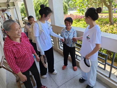 表演结束后,队员们蹲坐在老人面前,拉起老人的双手,与老人促膝而谈,了解老人们的饮食健康、身体锻炼、日常社交、作息安排等,认真倾听老人们的故事。面对一张张稚嫩又温暖的面庞,老人们也打开了话匣子,从中华人民共和国成立75周年翻天覆地的变化到家长里短的琐事趣事,从开始的拘谨腼腆到后来的渐渐熟络。一位老人表示:“我已经在这里住了8年了,每天的生活都很单调,很感谢这些年轻的血液给我的生活带来一些变化。”看到老人们灿烂的笑容,听到老人们爽朗的笑声,成员们充分体会到了本次活动的意义。