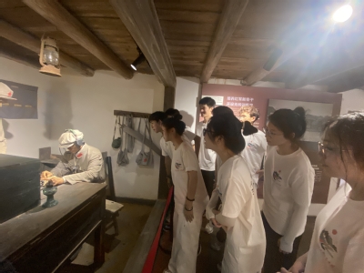 在知青纪念馆,实践队员们认真倾听解说,驻足细看历史古物、壁画、照片和影视资料。60年前的东固,历经了一段激情燃烧的岁月。来自祖国各地的知识青年,深深扎根农村,向当地农民学农技,学本领,办厂建校、开垦茶园,挥洒他们的青春年华。东固的知青用青春和他们的顾全大局、艰苦奋斗的精神感动着大家。这里不仅有历史的痕迹,有英雄的足迹,更有对革命先烈的无尽怀念。
