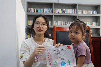 童心启航处,港湾护梦行。“抬起头,踮脚尖,加快我长大的脚步。”队员们以简单的儿歌作为破冰行动,活跃现场气氛。为了弘扬绿色文化、深化环保精神,实践队员们精心设计了一堂生动有趣的植物学习课。随着一张张PPT的放映,孩子们认真听取环保知识,并积极回应小课堂中的问题。实践服务团以传授知识为契机,在孩子们纯真的心灵中播下了保护环境的种子。队员们与小朋友一起绘画、做素拓游戏,拉近了心与心的距离。在才艺表演中,孩子用稚嫩的声音朗诵着“赤橙黄绿青蓝紫,谁持彩练当空舞”的诗句,他们的表演充满了童真和童趣,赢得了在场所有人的掌声和喝彩。微光虽渺,万丈成炬,孩子们的笑靥便是最好的模样,实践队员们的奉献便是青春最靓丽的名片。