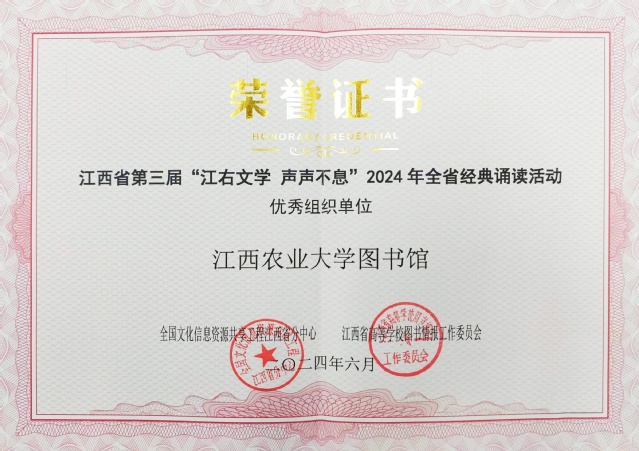 近日,江西省第三届“江右文学 声声不息”经典诵读活动评选结果正式出炉。经过激烈角逐,人文与公共管理学院汉语言文学2201班方绍应同学荣获音频组三等奖,校图书馆荣获优秀组织单位。