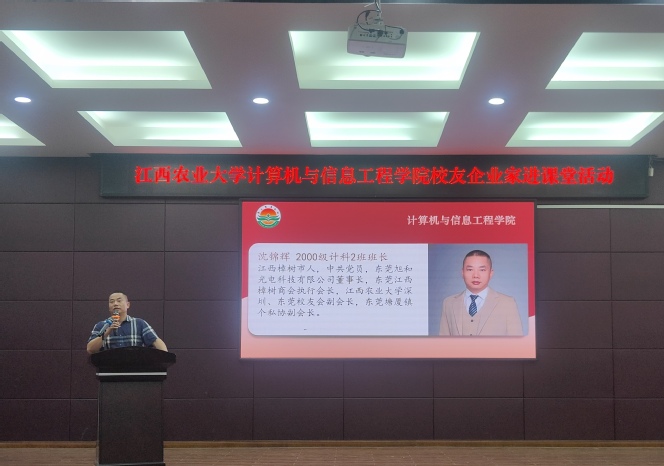 为进一步做好学生就业指导,充分发挥“优秀校友企业家进课堂”引领作用,激励引导学生创新创业,6月15日,计算机与信息工程学院在大学生活动中心501报告厅举办2024年“校友企业家进课堂”活动。东莞旭和光电科技有限公司董事长,学院计算机科学与技术专业2000级优秀校友沈锦辉应邀回母校为2021级学生授课。徐志勇、肖先冉、彭徽、叶祥蓁、刘凯凯等校友共同参与了分享会。