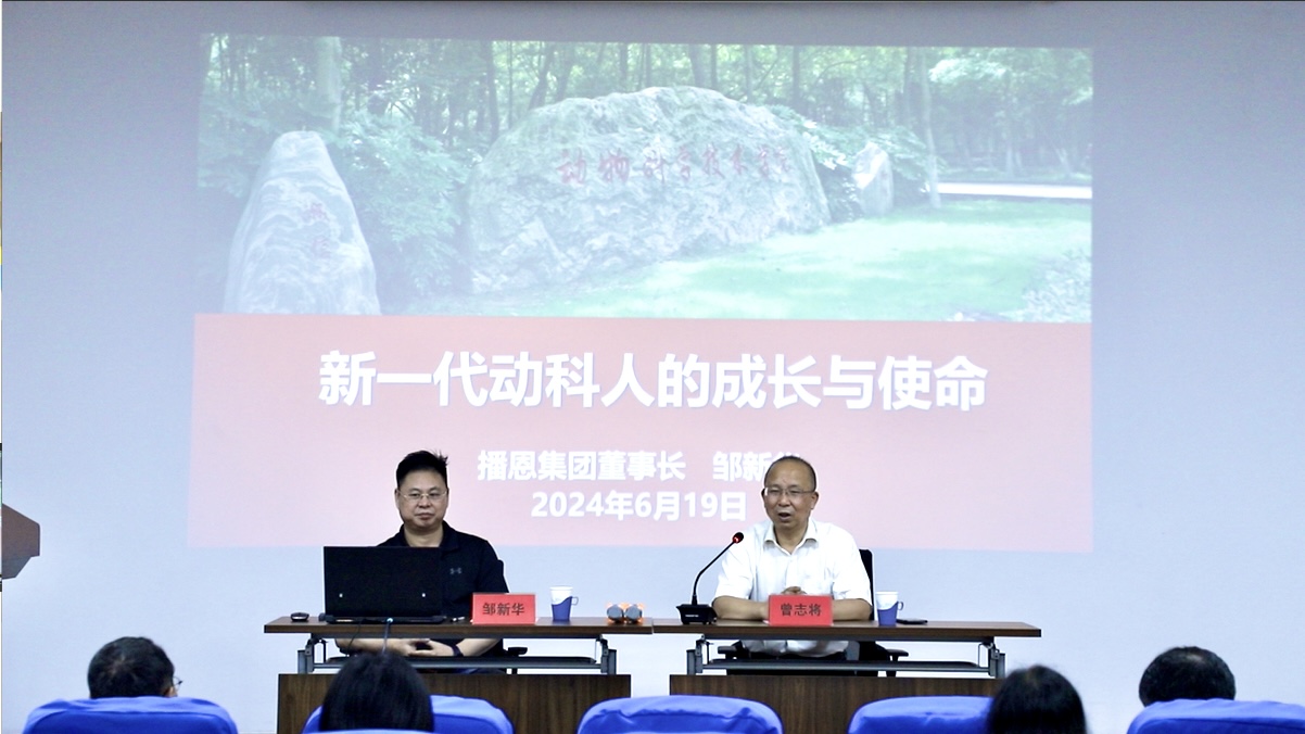 讲座中,邹新华深情地回顾了自己在学校度过的青春岁月,表达了对母校的感激之情。他提到,正是学校严谨的学风和扎实的专业教育,为他日后的创业之路奠定了坚实的基础。他指出,在当今行业发展机遇与挑战并存的时代背景下,新时代的动科学子承载着推动畜牧业可持续发展、以农业科技创新助力乡村振兴的光荣使命。