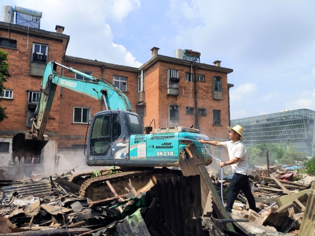 5月23日8时10分许,伴随着轰鸣声,挖掘机进入江西紧固件厂第8栋职工住宅房前的院子开始拆除作业。副校长刘木华到现场指导,产业中心、保卫处、校医院、蛟桥街道办城管执法大队相关人员和全体校属企业负责人、专班工作人员、居民群众共同在现场见证了开拆作业。