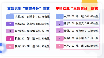 来自工学院的刘志强,全年完成乐跑179次,他说道:“刚开始跑步确实会有点累,但是只要坚持下来,慢慢地就会养成一种习惯。”全年完成乐跑175次的国土学院熊星宇,也有着相似的体会:“在没有接触乐跑之前我只是偶尔跑步,后来发现跑步成了一种乐趣和习惯,并且至今保持跑步的爱好。跑步让我心情愉悦,释放了学习压力。”