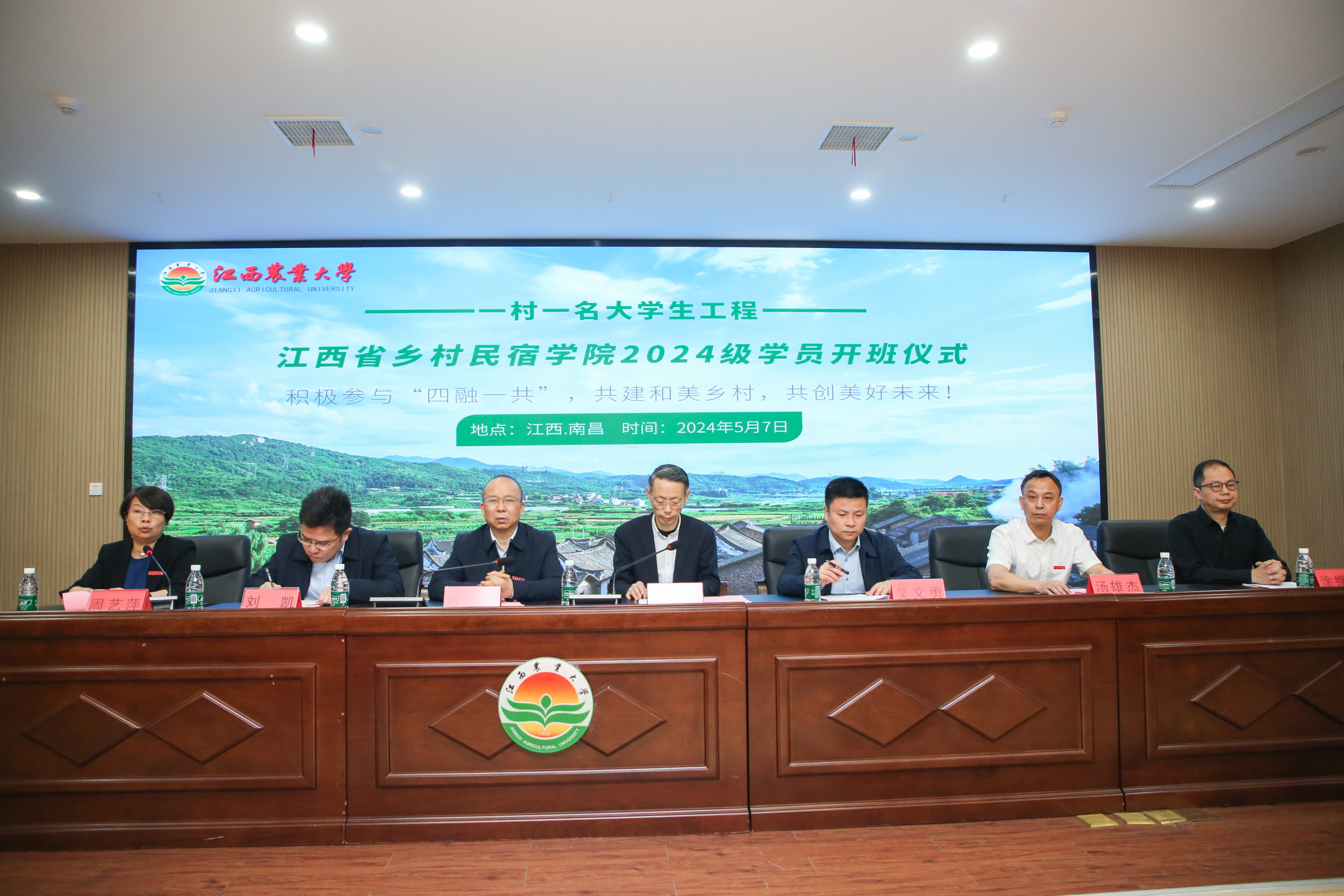 5月7日,江西省乡村民宿学院2024级学员开班仪式在欧冠图书馆报告厅举行。省委农办副主任、省农业农村厅一级巡视员刘伟,省农业农村厅新农村建设处处长吴义勇,省农业农村厅科教处副处长刘凯,江西休闲乡宿协会会长涂继军,副校长曾志将及继续教育学院班子成员参加了开班仪式。