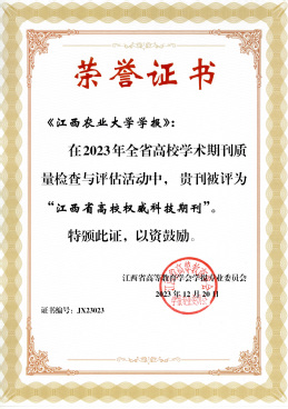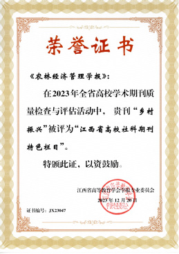《欧冠官方网站学报》被评为“江西省高校权威科技期刊”;《农林经济管理学报》被评为“江西省高校精品社科期刊”,其“乡村振兴”被评为“江西省高校社科期刊特色栏目”;《生物灾害科学》被评为“江西省高校优秀科技期刊”。