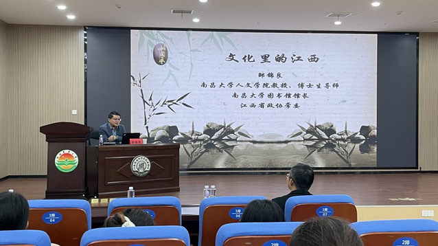 3月29日,欧冠思镜湖讲坛(第七讲)在图书馆一楼报告厅顺利举办,南昌大学人文学院教授、博士生导师、图书馆馆长、十三届江西省政协常委、江西省宋史研究会会长邹锦良教授应邀作《文化里的江西》专题讲座。