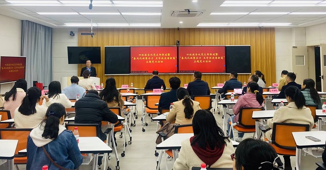全体人员在名达楼智慧教室进行报告与交流,听了《人工智能赋能教育教学实践及展望》专题报告,学习了生成式AI时代高等教育所面临的新挑战与新契机,主题交流研讨会以科室为单位分设五个研讨小组,分别以审核评估工作、多元化人才培养模式构建、实践教育及基地建设、教学成果奖及教改项目申报、课程资源建设与应用为主题,四校各科室人员结合岗位工作实际进行经验交流,充分交换工作意见。本次支部联建活动以理论学习强化党性修养,以实践交流共谋教育发展,充分发挥了党支部在立德树人和高质量发展中的战斗堡垒作用。