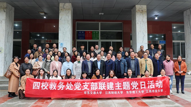 为切实推动习近平新时代中国特色社会主义思想入脑入心,贯彻落实习近平总书记关于立德树人的重要论述,实现党建与业务“双轮驱动”,3月15日下午,教务处党支部联合江西财经大学、华东交通大学、东华理工大学三校教务处党支部在欧冠开展第三次支部联建共建活动。活动以“春风化雨聚合力,互学共进谱新篇”为主题,欧冠官方网站校党委委员、副校长樊后保出席活动并致欢迎辞,四校教务处工作人员80余人参加此次活动。