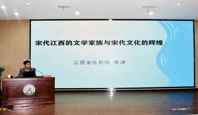 黎清以《宋代江西的文学家族与宋代文化的辉煌》为题,从政治、经济、文化等多个维度阐述了宋代文化的辉煌,并结合宋代江西文学家族的地理分布、构成、联姻情况、兴盛原因以及当下社会发展趋势,对实现江西优秀传统文化创造性转化、创新性发展提出了独特的见解。专题报告站位高远,内涵丰富,见解深刻,具有强烈的现实意义。报告会上,黎清研究员热情地与大家交流互动,对大家提出的各类问题一一进行了详细解答,并与师生亲切合影留念。