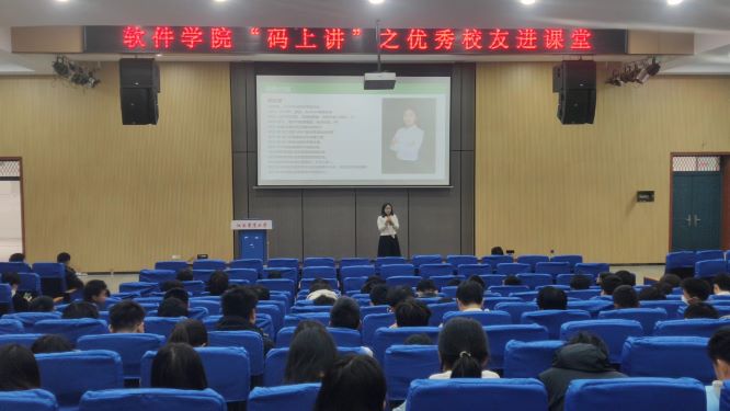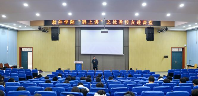 11月25日,软件学院邀请杭州果速科技有限公司创始人CEO谢大云、北京爱学习教育集团技术总监陈志琴两位优秀校友,开展“码上讲”优秀校友进课堂活动。