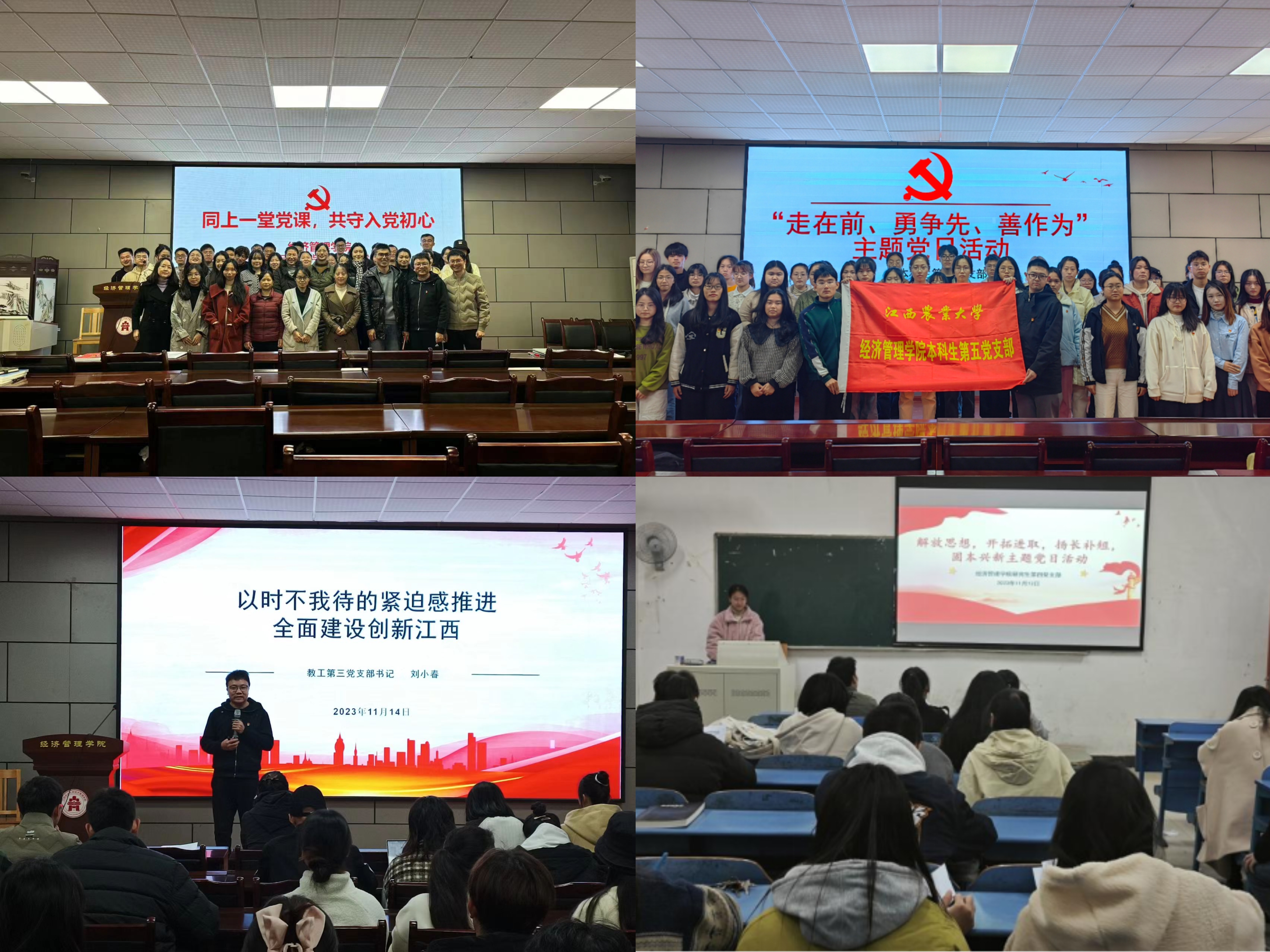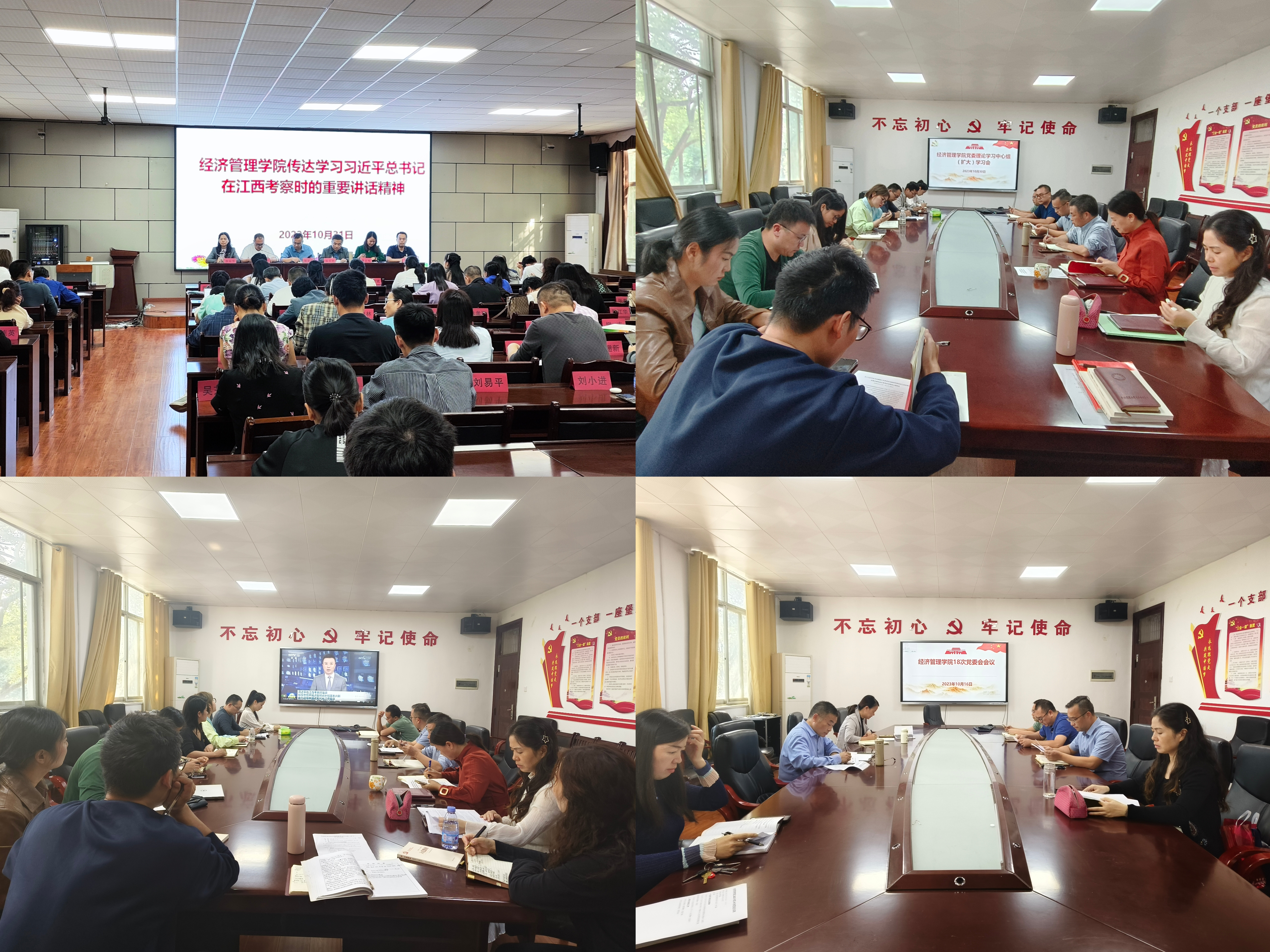 习近平总书记考察江西以来,经管学院深入开展学习贯彻习近平总书记考察江西重要讲话精神,通过学院全面系统学、领导干部带头学、支部集中深入学、悟透精髓实践学的“四学”联动机制,抓实党员理论学习全覆盖,唯实唯勤写好习近平总书记重要讲话精神的深化、内化、转化的“大文章”,围绕目标要求,激励引导广大师生党员在理论学习上走在前,在服务群众上勇争先、在乡村振兴上善作为。