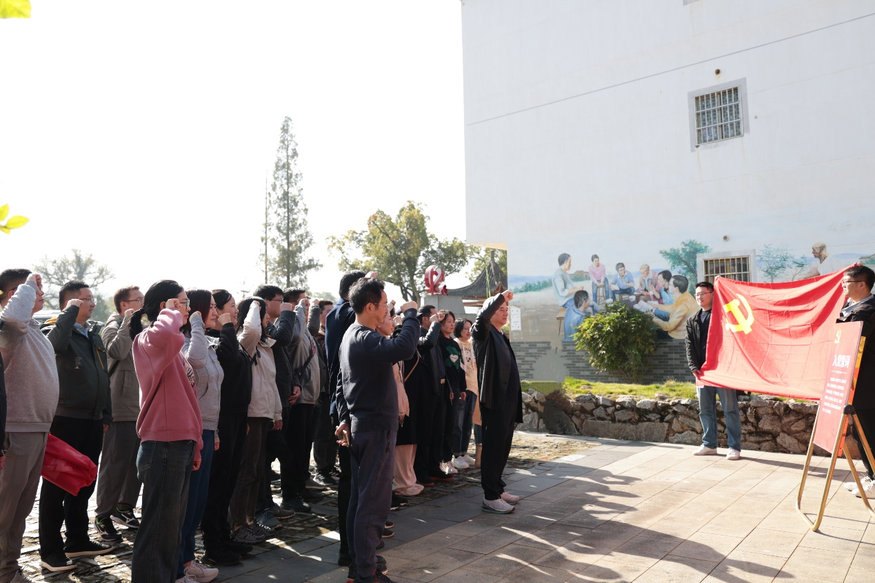 参观结束后,在院党委负责人的领誓下,全体党员面向鲜红的党旗,举起右拳,重温入党誓词。一字一句,庄严而豪迈,“我宣誓,我志愿加入中国共产党,拥护党的纲领,遵守党的章程,履行党员义务……” 铿锵有力的宣誓声回望入党初心,感受共产党人为共产主义事业奋斗终身的决心,升华对党和国家的情感,提振干事创业的精气神。