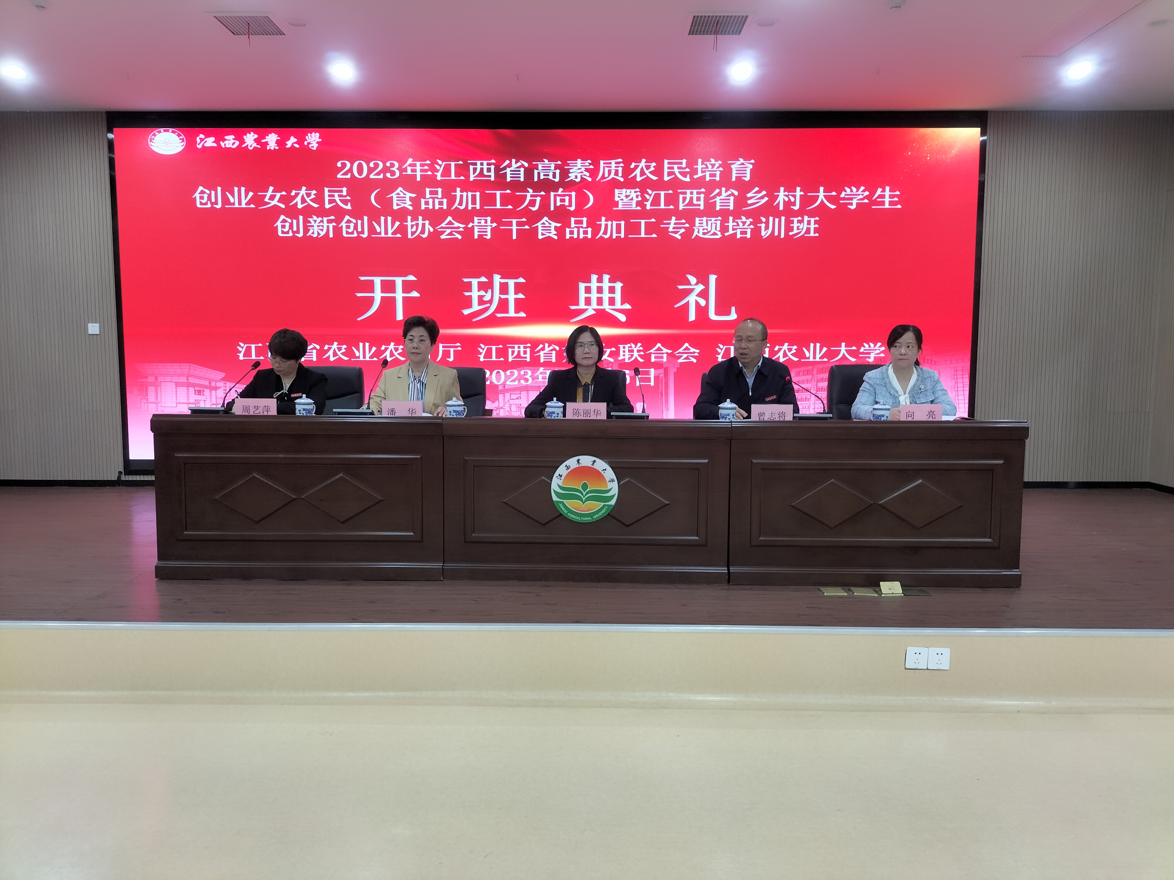 11月6日上午,2023年江西省高素质农民培育“创业女农民”暨乡村大学生创新创业协会骨干“食品加工专题”培训班开班典礼在欧冠举行。江西省妇女联合会党组成员、挂职副主席陈丽华,校党委委员、副校长曾志将,江西省农技推广中心科技教育与宣传处处长潘华,江西省妇女联合会发展部部长向亮、副部长简海出席了开班典礼。来此全省220余名参训学员将在欧冠进行为期12天的培训。