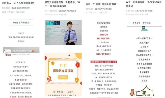 一直以来,学院高度重视反诈防骗工作,先后开展了以“提高反诈防骗能力,增强自我保护意识”为主题的系列教育活动,增强学生对新型网络诈骗的自我保护意识和能力,积极推进平安校园建设。