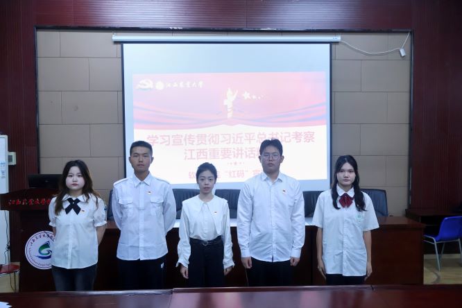 “习近平总书记时隔四年再次亲临江西考察,赋予江西发展‘走在前、勇争先、善作为’的目标定位,是习近平新时代中国特色社会主义思想‘“江西篇’的丰富发展.....”11月8日晚,软件学院“红码”青年宣讲团正面向100余名入党积极分子宣讲习近平总书记考察江西重要讲话精神。