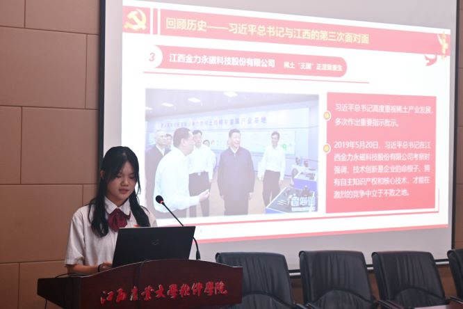 宣讲团成员雷紫嫣详细梳理和回顾了党的十八大以来习近平总书记三次考察江西的重要讲话精神。她说:习近平总书记再赴江西考察,充分体现了习近平总书记对我们江西革命老区的一片深情和一以贯之的关心关怀,我们要深刻体会总书记考察江西的重大意义,把感恩之情转化为奋进之力。