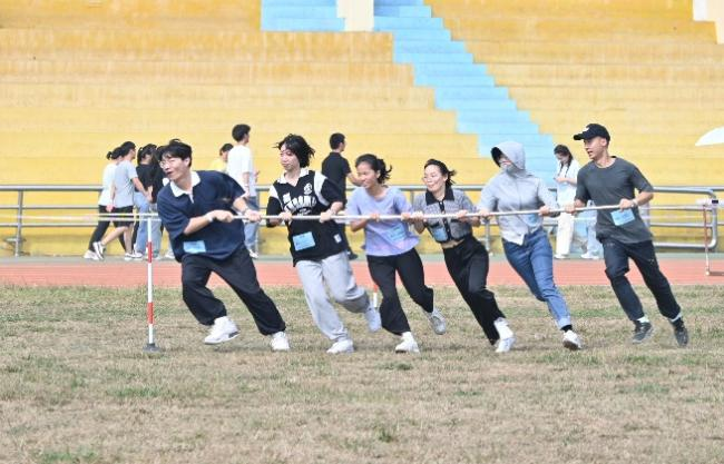 此次趣味运动会旨围绕“趣味”主题设置快乐毛毛虫、袋鼠跳、加速旋风跑、螃蟹赛跑、趾压板接力大作战、无敌风火轮等六个团体项目,共有来自14个学院70多支队伍的600多名研究生参赛。参赛研究生精神抖擞、斗志昂扬地投身各项比赛。快乐毛毛虫、袋鼠跳、加速旋风跑等项目,不仅检验了大家的体力,更考验了团队的凝聚力和向心力;螃蟹赛跑、趾压板接力大作战、无敌风火轮项目,不单是智慧与体力的角逐,更是默契与信任度的完美比拼。赛场上,加油、欢呼、喝彩声此起彼伏,领先队伍一鼓作气,落后队伍锲而不舍,每一位参赛队员都全力以赴,每一支参赛队伍都团结拼搏,生动展现了新时代研究生团结协作、永不言弃的青春风貌。