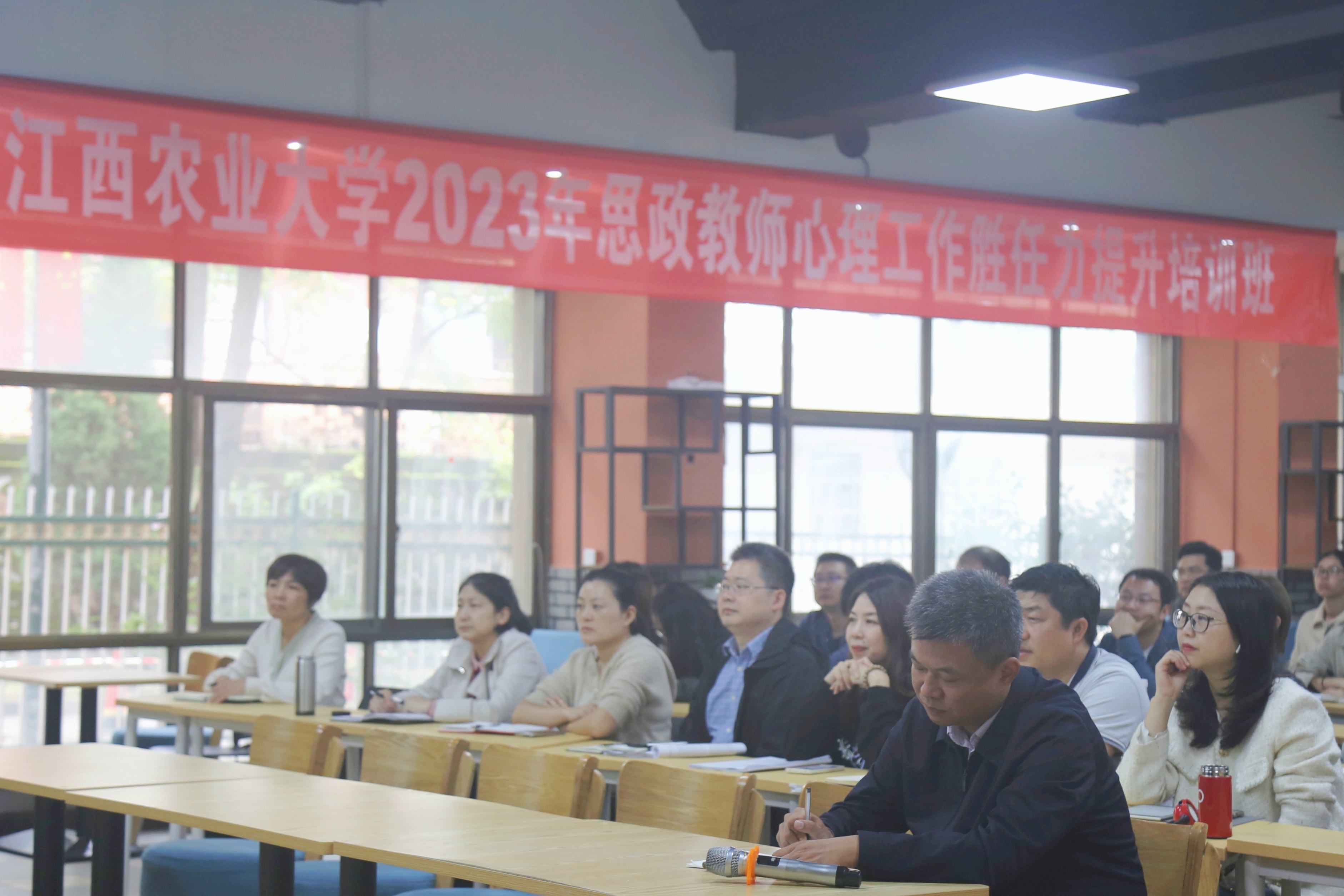 培训班第一讲邀请到江西科技职业学院党委书记、东华理工大学硕士研究生导师王平风教授做“高校如何加强心理健康教育工作”的专题讲座。王平风从高校心理健康教育工作目标、存在问题及工作策略等方面,以视频、案例等方式形象讲授如何提升大学生心理健康意识、营造积极向上阳光校园氛围,及做好大学生危机防范与干预等。整场讲座内容丰富,实操性强,生动有趣。在座老师们纷纷表示意犹未尽,获益匪浅。