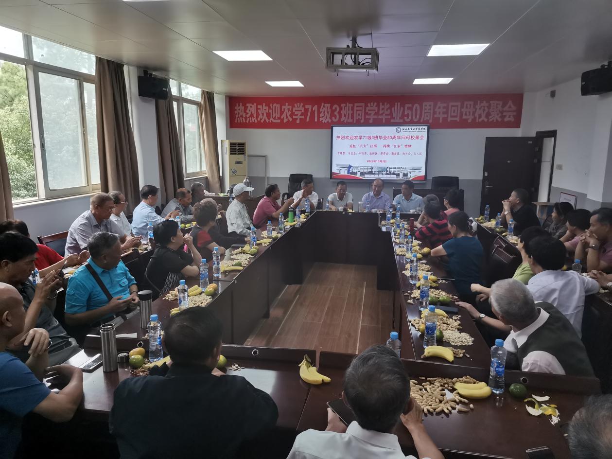 10月3日,共产主义劳动大学总校农学71级3班毕业50周年回母校团聚,欧冠官方网站原校长刘宜柏、副校长贺浩华、农学院党政主要领导参加了座谈会。