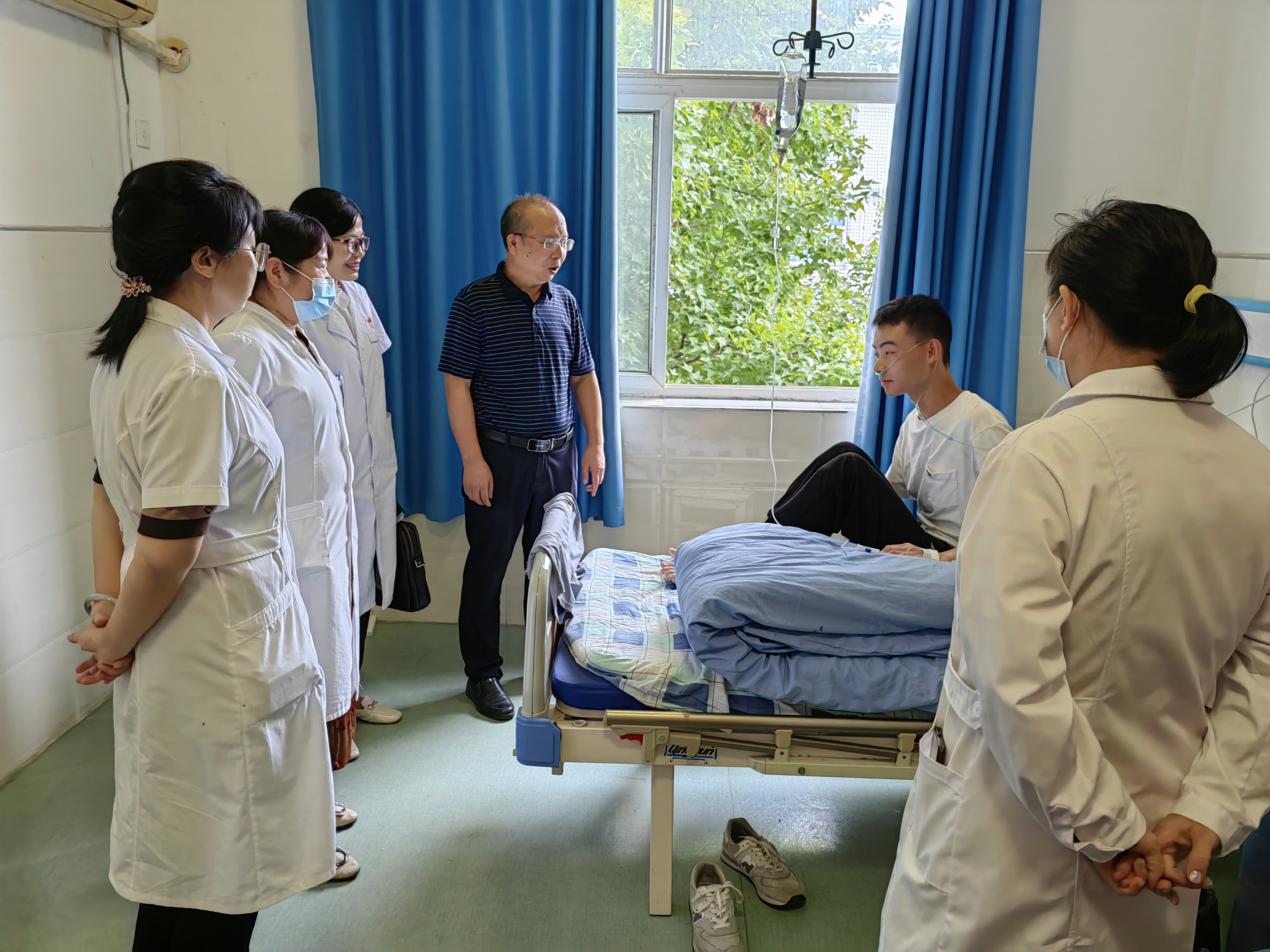 曾志将详细了解了2023级新生入学体检情况,实地查看住院部收治病人情况,与住院患者进行亲切交流,叮嘱其安心治病养病。座谈交流中,曾志将高度肯定了医院(校卫健办)在学校事业发展中尤其在近几年的疫情防控中所作的贡献和努力,要求大家要提高政治站位,优化内部管理,统筹门诊和住院部人员安排,激发内生动力,做好开源节流,努力提高医疗技术水平和服务能力,同时也要做好医疗消防安全,抓实党风廉政建设工作,为学校发展提供有力的健康保障。