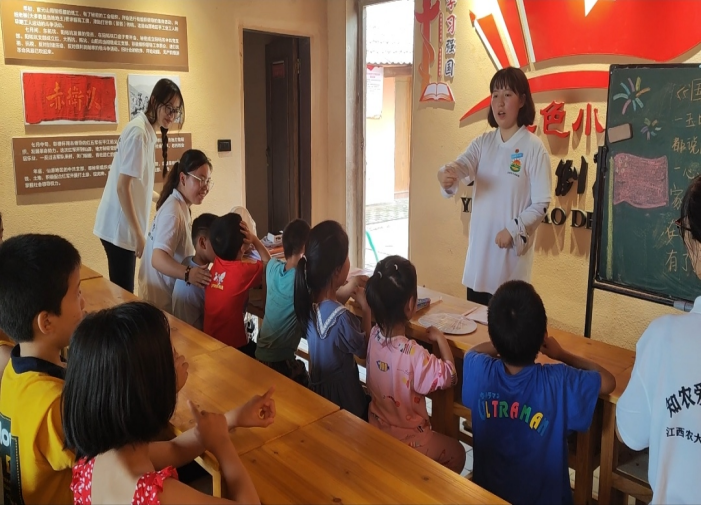 “老师我以后要去县城”,“我未来想去南极看企鹅”……九江市船滩镇的留守儿童们用稚嫩的童声诉说着对大山外面世界的向往,在这里,“盛夏新征程,支教筑梦行”实践营队展开了三周的支教活动。从爱国教育、安全教育到品格教育,服务团成员鼓励孩子们追求远大目标,成为有责任有担当的新时代好青年。暑期课堂教学、日常陪护活动,实践队员们将爱传递给孩子们,让爱不再孤独,让每一朵花蕾都尽情绽放。