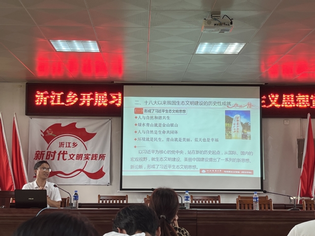 “只有将党的创新理论学深悟透,才能真正打通理论宣传‘最后一公里’”,队长朱伟在宣讲后感悟道。营队充分发挥专业优势,打造理论宣讲“轻骑兵”,面向基层和群众开展了多层次、广覆盖的宣讲,推动党的创新理论“飞入寻常百姓家”。 一场场带有“真理味道”“时代味道”“百姓味道”的宣讲,让干部群众坐得下、听得进、弄得懂。基层一线讲思想。黄以胜博士以生态文明与美丽中国建设为题,运用塞罕坝、“千万工程”、安吉余村等丰富案例,并结合新干生态文明建设的实际,带领乡村干部群众感悟党的十八大以来我国生态文明建设和生态环境保护取得的历史性成就,领悟习近平生态文明思想的真理力量和实践伟力。进村入户传党音。宣讲团成员朱伟、于雅文分别以“加快建设农业强国”和“建设良好家风,助推乡村振兴”为题,用通俗易懂的语言、生动具体的案例向当地干部群众作“微宣讲”。田间地头话政策。营队走进蔬菜大棚,聆听基地负责人的情况介绍,并与农民朋友一同对茄子进行整枝。宣讲团成员朱伟在田间地头讲解党的二十大报告关于农业农村工作的重要部署、2023年中央一号文件精神等,传递党中央强农兴农的政策导向,激励大家为保障粮食和重要农产品稳产保供、把中国人的饭碗牢牢端在自己手里贡献力量。